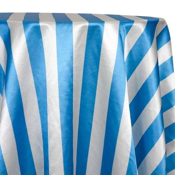 1pc - 2" Satin Stripe Table Linen 120" Round - White and Turquoise