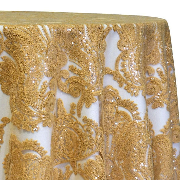 1pcs - Princess Lace Table Linen 90" Round - Gold