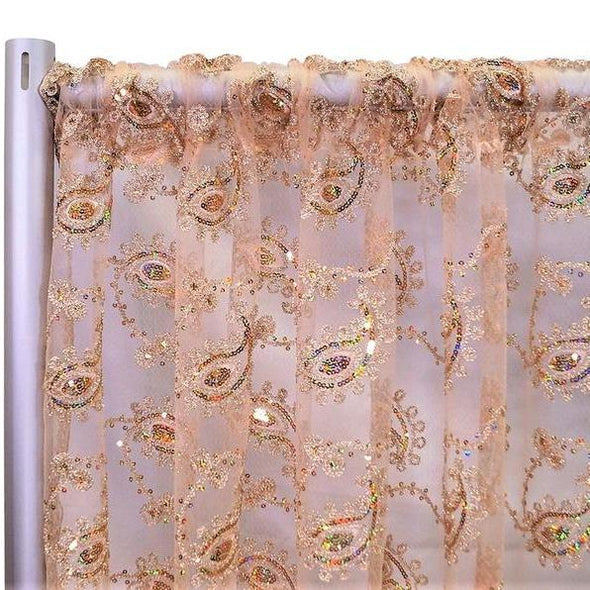 Fabric Collection: This fabric has a mesh netting base w/ a Paisley design embroidery with sequins throughout.