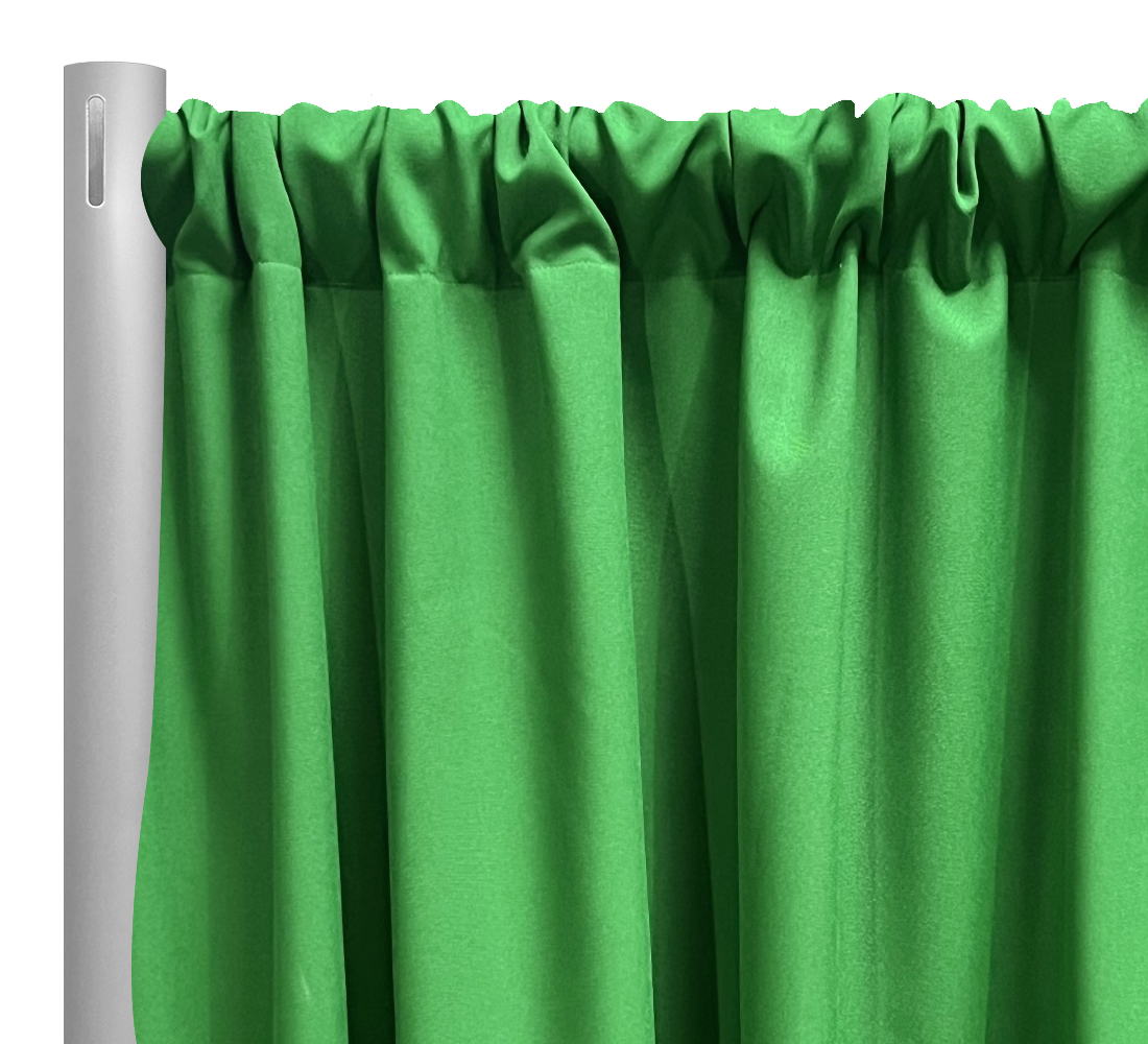 SIZE OPTIONS: Select your desired panel height above. Panels are approx. 58" wide and come standard with a 4" Rod Pocket on top. You can add a bottom Rod Pocket for an additional $5.00 per panel. Our drapes will work on any of our Pipe & Drape systems. Contact us at 800-590-9508 for custom sizing.