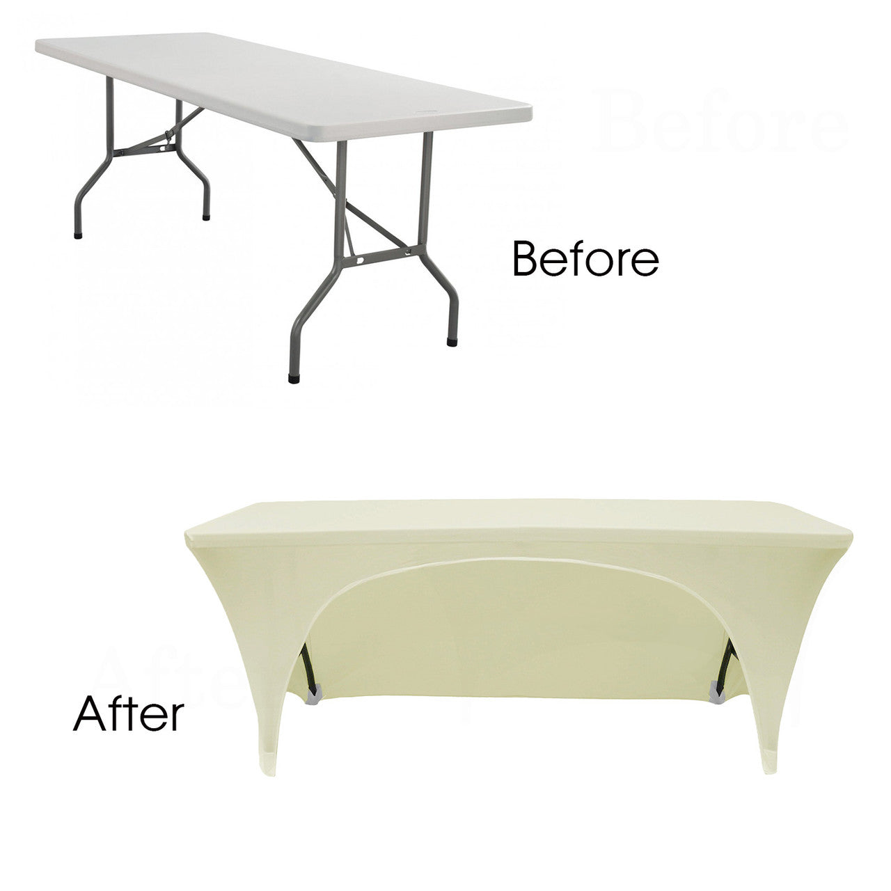Premium Spandex (6'x18" w/ Side Open) Banquet Table Cover in Ivory
