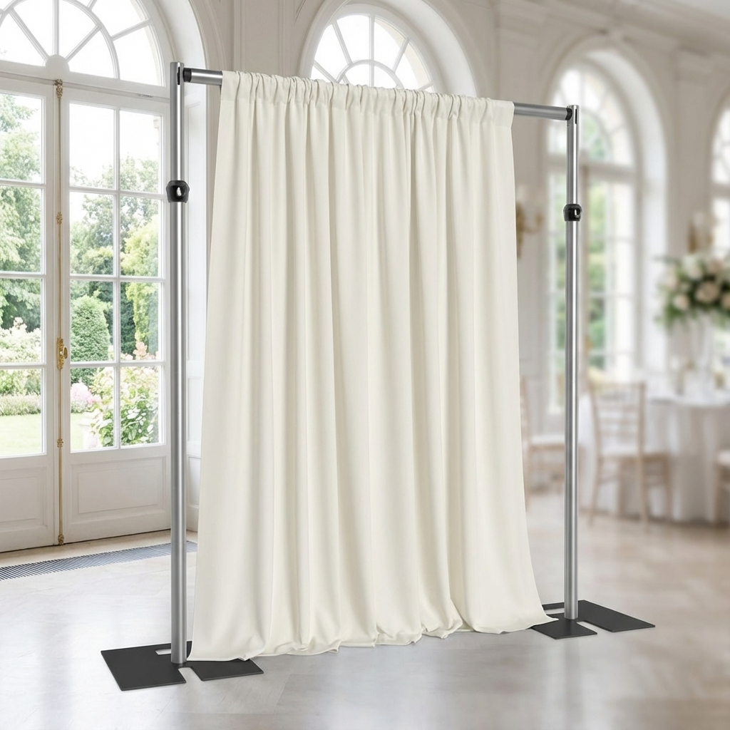 SIZE OPTIONS: Select your desired panel height above. Panels are approx. 58" wide and come standard with a 4" Rod Pocket on top. You can add a bottom Rod Pocket for an additional $5.00 per panel. Our drapes will work on any of our Pipe & Drape systems. Contact us at 800-590-9508 for custom sizing.