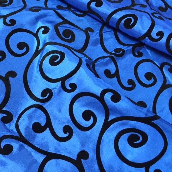 Swirl Flocking Taffeta Table Runner in Black on Royal