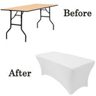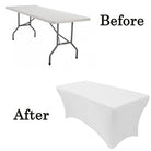 Our durable spandex chair covers fit standard 8' Banquet Tables (8' Length x 30" Depth x 30" Tall). They're made from high quality spandex with a 4-way stretch so they're easy to put on and made to last. They're also made with durable elastic foot pockets which help secure the cover in place, ensure a great fit, and help prevent damage and excess wear and tear. These covers are a perfect way to improve the look of your chair covers and ideal for rental companies, banquet halls, hotels, various venues and special events.