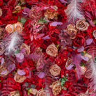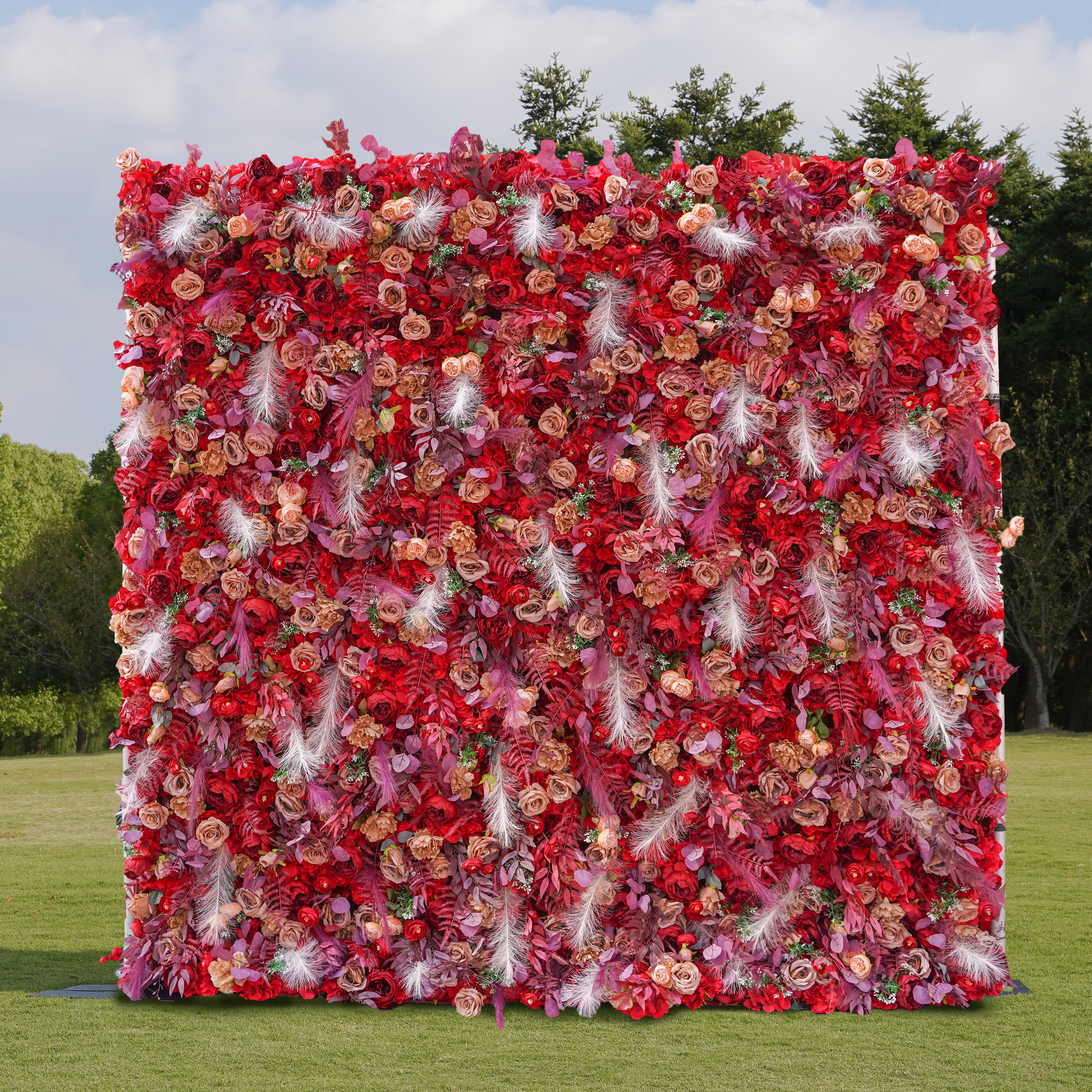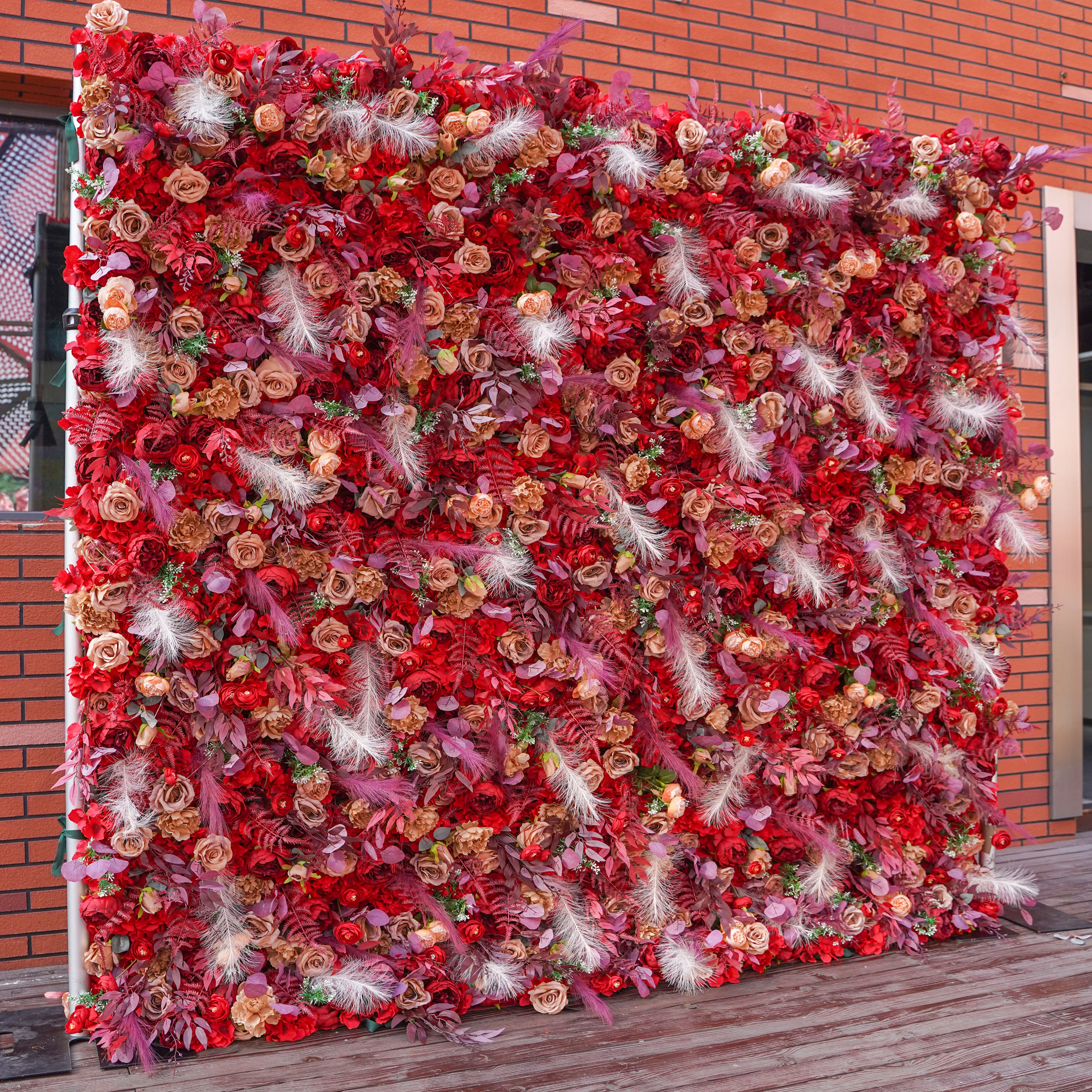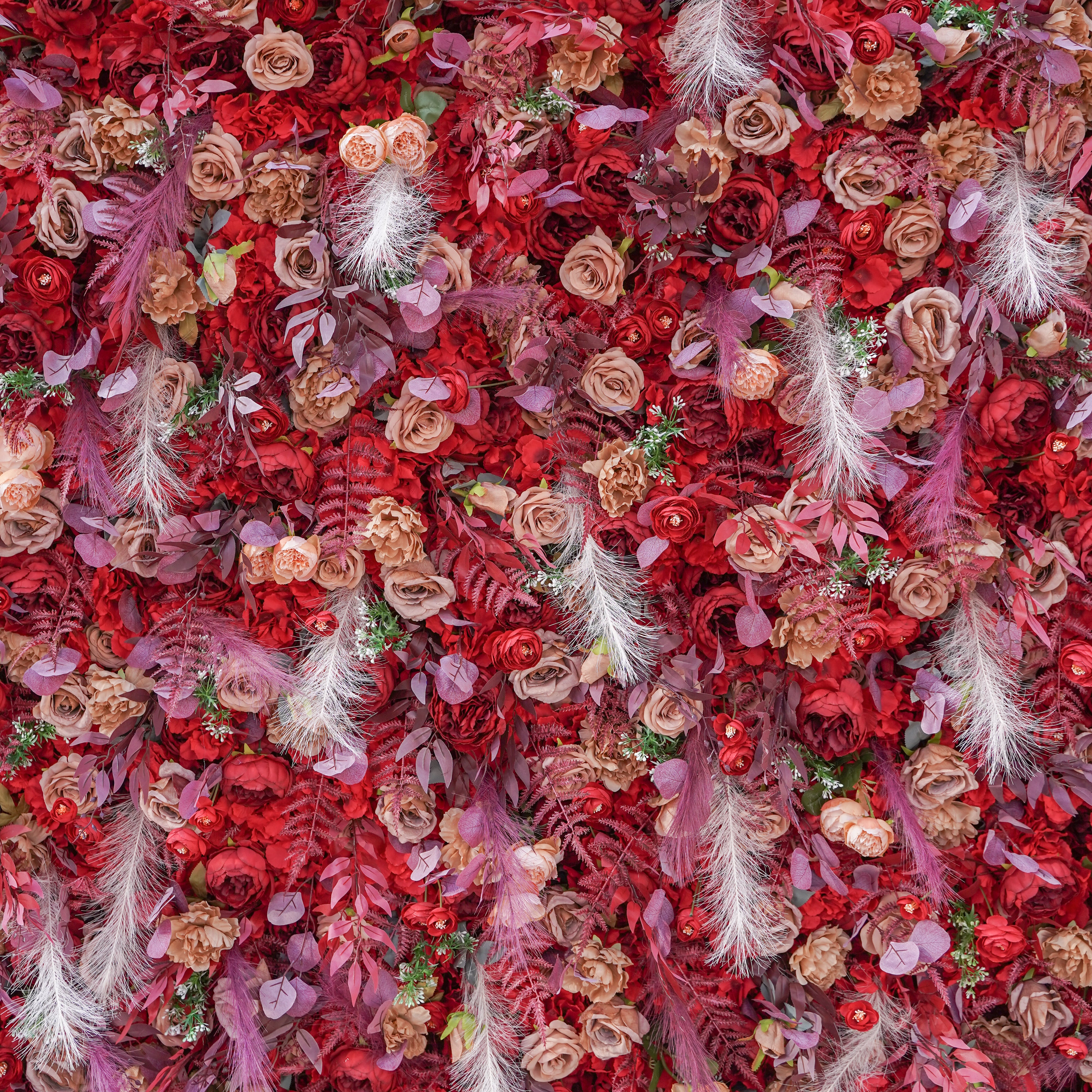 Our Jenny flower wall offers a unique combination of Pampas, Roses and Hydrangea flowers in red, taupe, and dusty rose hues with small accents of greenery. This item is made from high-quality materials and is densely layered to provide a stunning and long lasting Flower Wall.