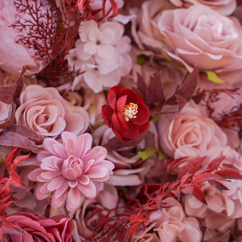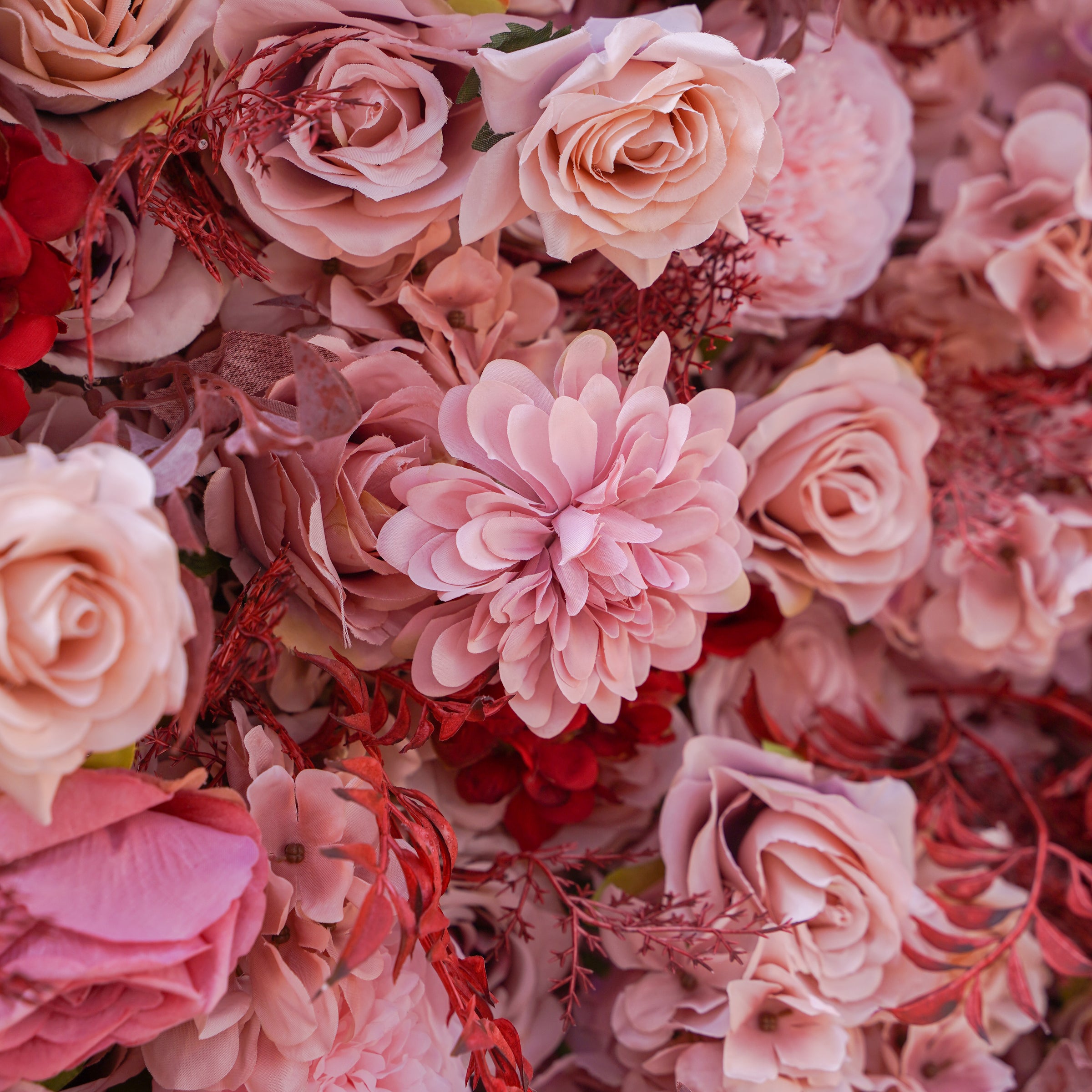 Our Katyusha flower wall offers an entrancing arrangement Rose, Dahlia and Hydrangea flowers in blush and dusty rose hues. This item is made from high-quality materials and is densely layered to provide a stunning and long lasting Flower Wall.