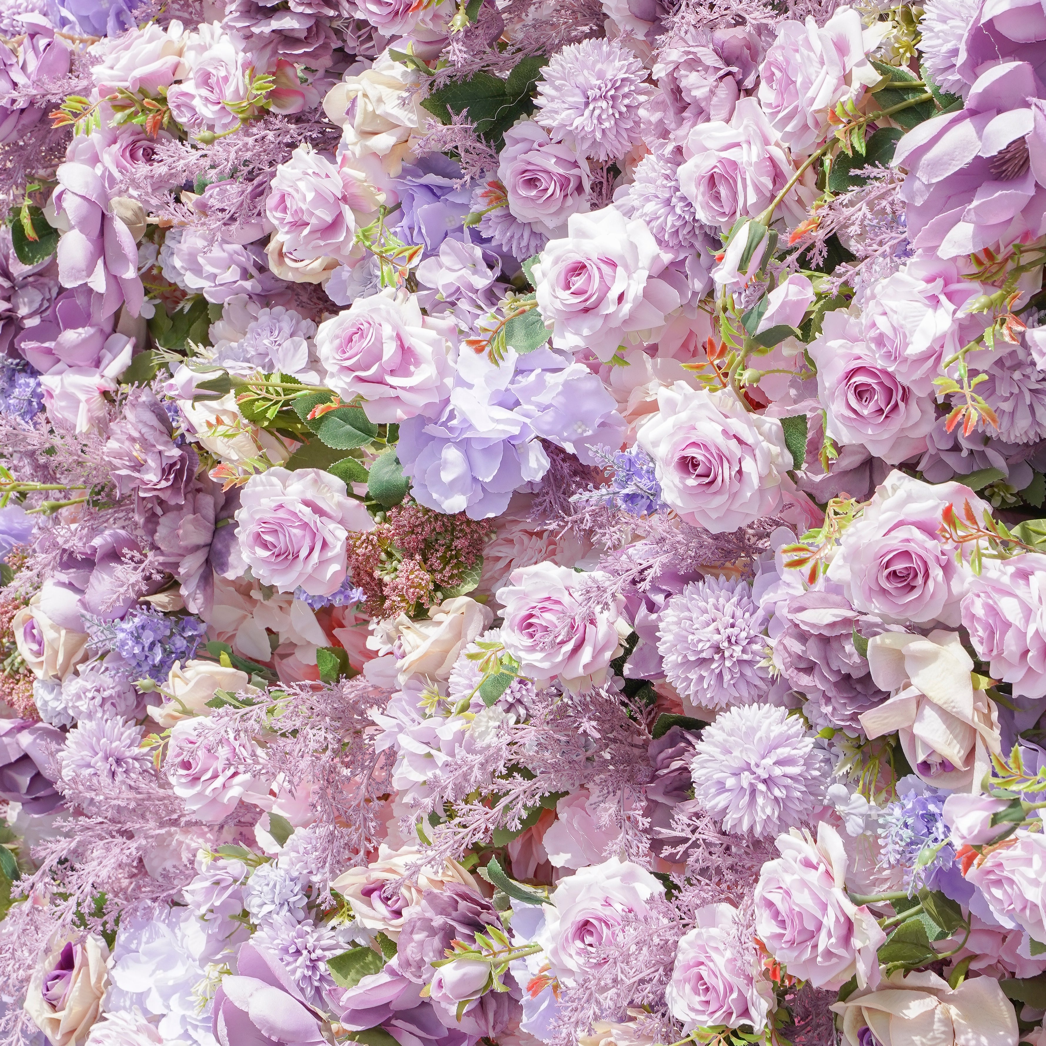 Our Kiki flower wall offers a charming combination of Dahlia, Hydrangea and Peony flowers in lavender, lilac, and ivory hues with small accents of greenery. This item is made from high-quality materials and is densely layered to provide a stunning and long lasting Flower Wall.