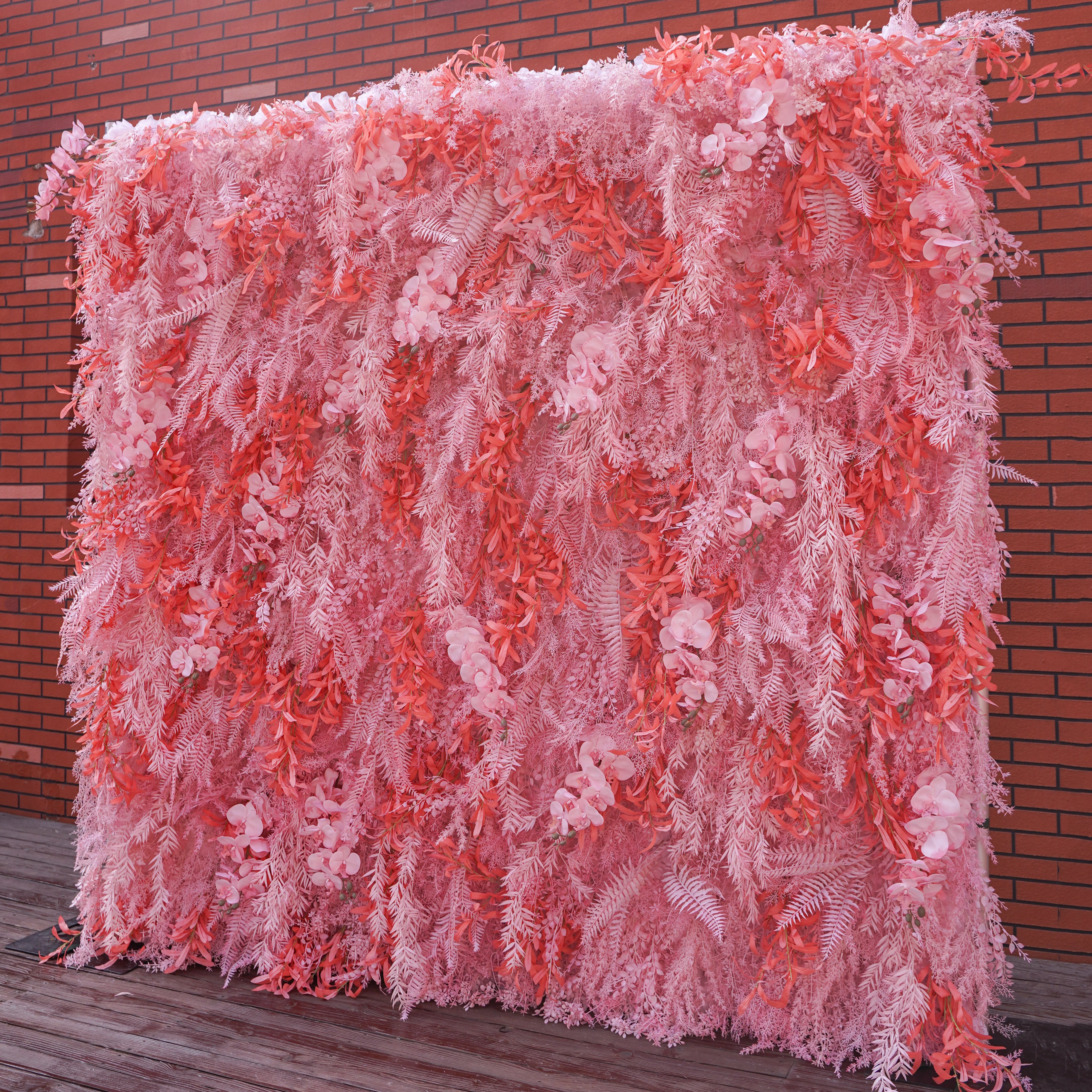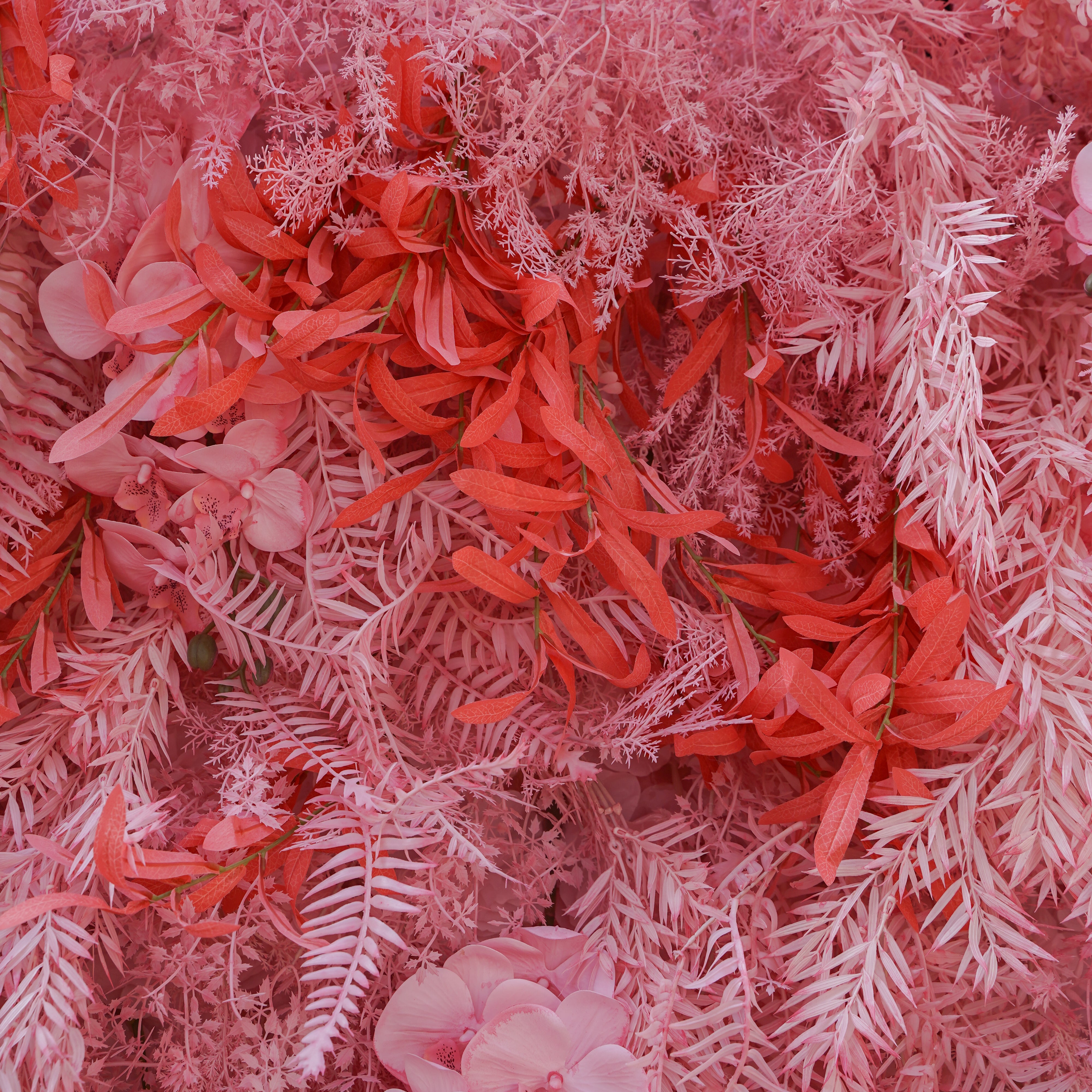 Our Pink Dream flower wall offers an dazzling arrangement Fern and Eucalyptus flowers and olive leaves in blush and fuchsia hues. This item is made from high-quality materials and is densely layered to provide a stunning and long lasting Flower Wall.