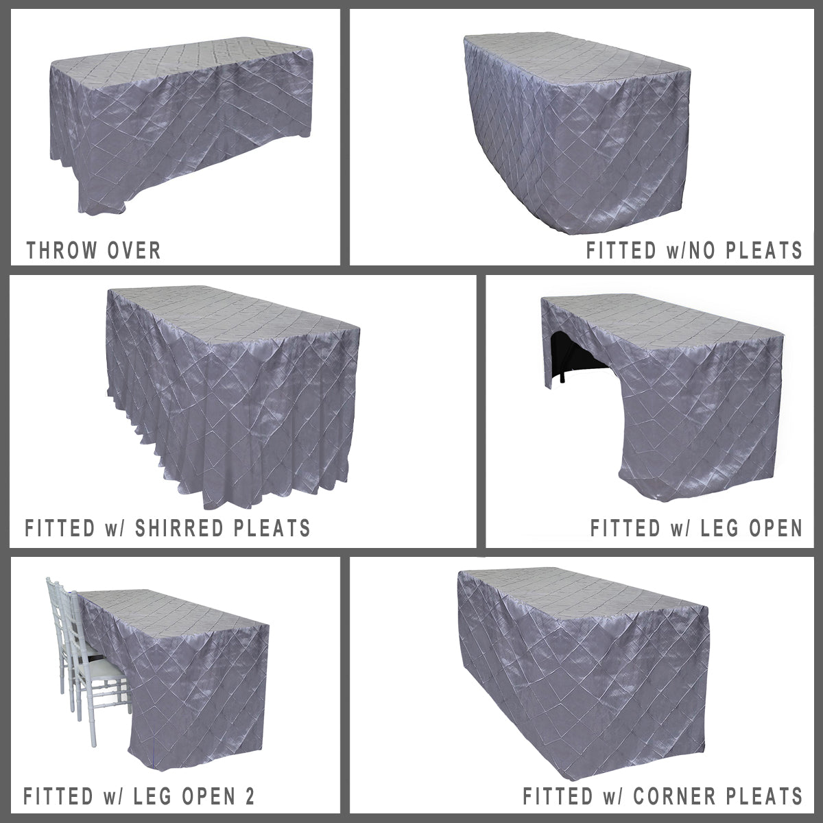 ORDERING INSTRUCTIONS: Step 1: Choose your table type/size. > Step 2: Choose your Linen Fit style. > Step 3: Select Qty and Color. > Step 4: Add to cart and proceed to checkout.
