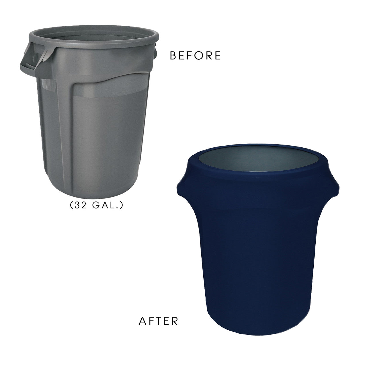 Spandex Trash Can Covers offer a great way to transform old and worn trash cans by providing an elegant and clean look. They're easy to put-on/take-off and are made from our durable spandex material. They fit standard 32-gallon trash cans and are perfect for special event, conference centers, tradeshows, concerts, and many other functions.