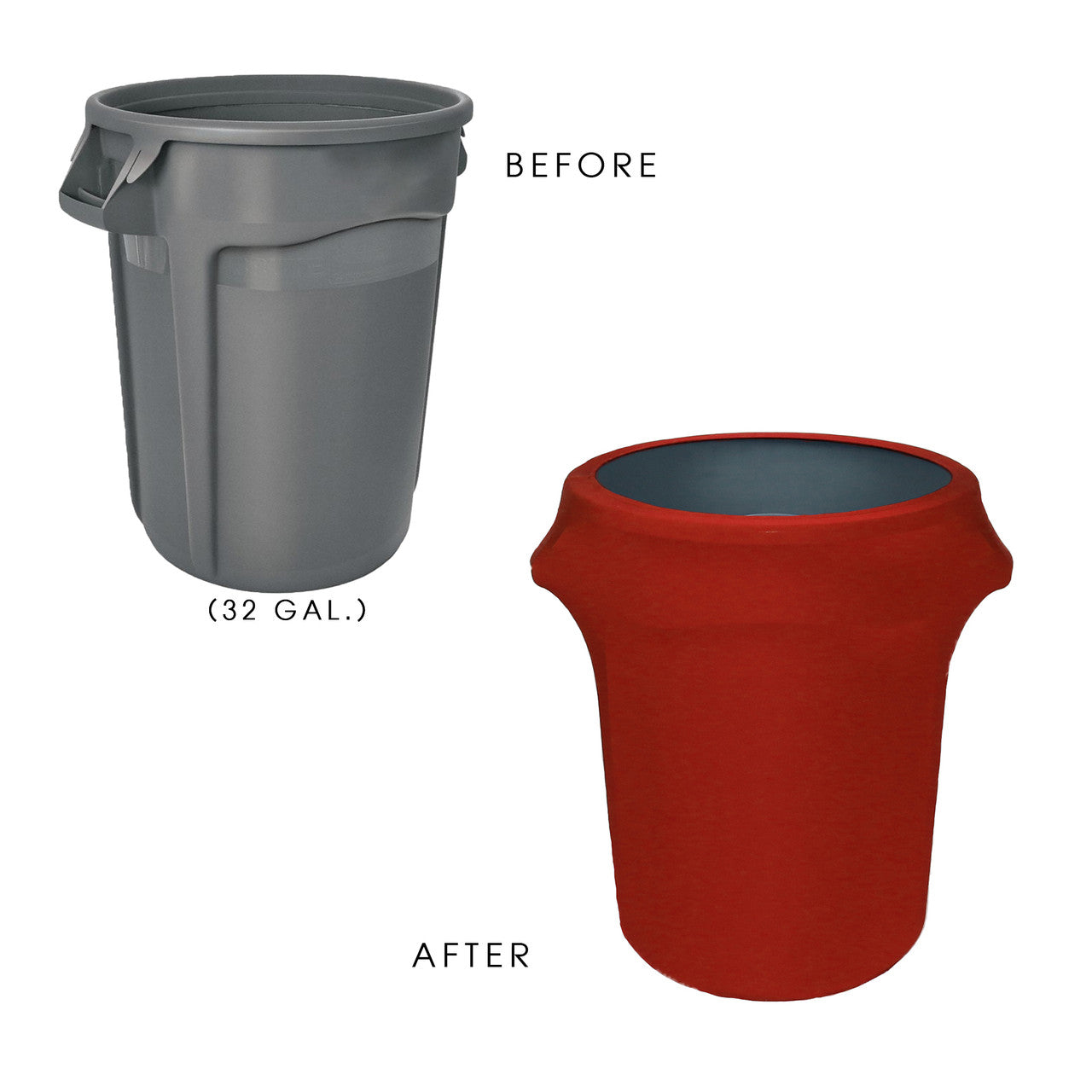 Spandex Trash Can Covers offer a great way to transform old and worn trash cans by providing an elegant and clean look. They're easy to put-on/take-off and are made from our durable spandex material. They fit standard 32-gallon trash cans and are perfect for special event, conference centers, tradeshows, concerts, and many other functions.