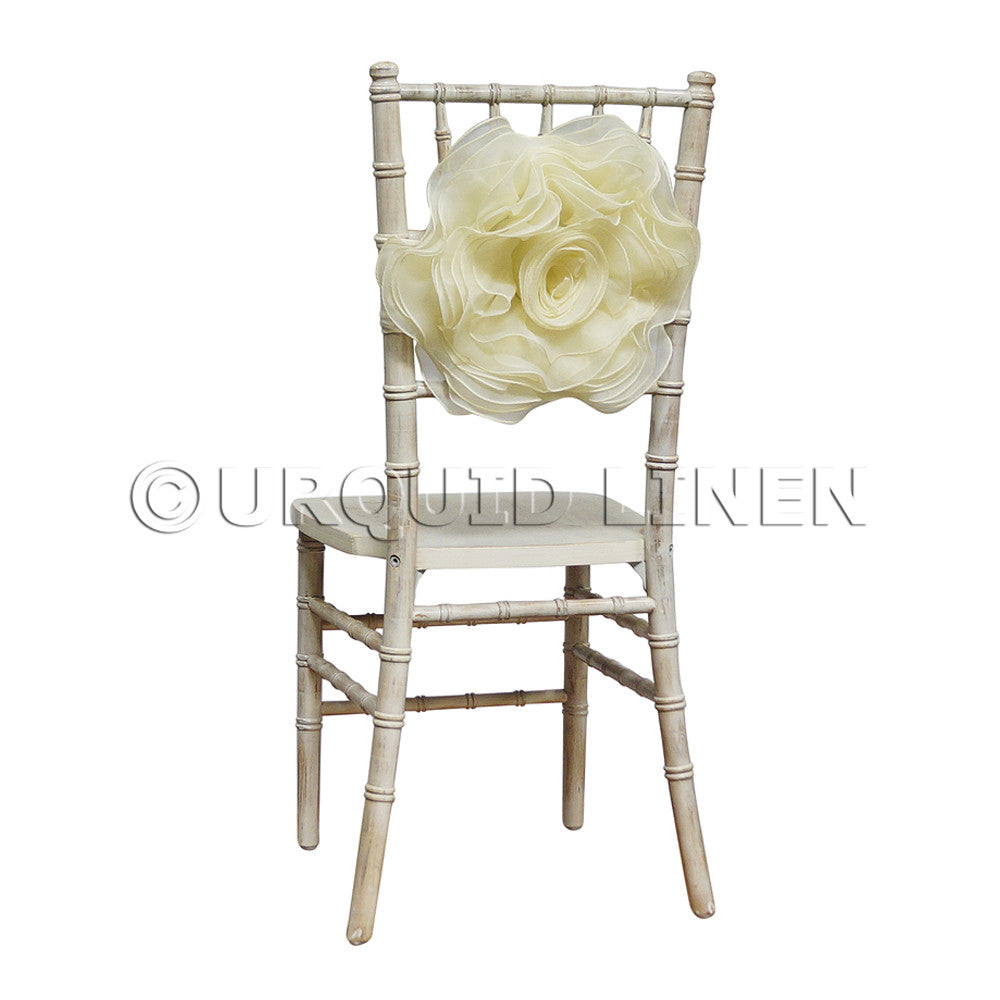 PRODUCT INFORMATION: Organza Rosette Chair Bow with Spandex Band.
