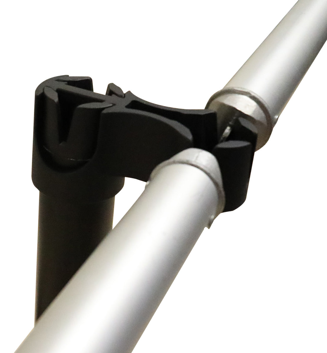 Crossbars enter a slot on the upright and gravity will weigh it down to settle the structure in place. It is the responsibility of those assembling the crossbars to determine if they require additional reinforcements, such as a zip tie or tie downs, to ensure greater stability.