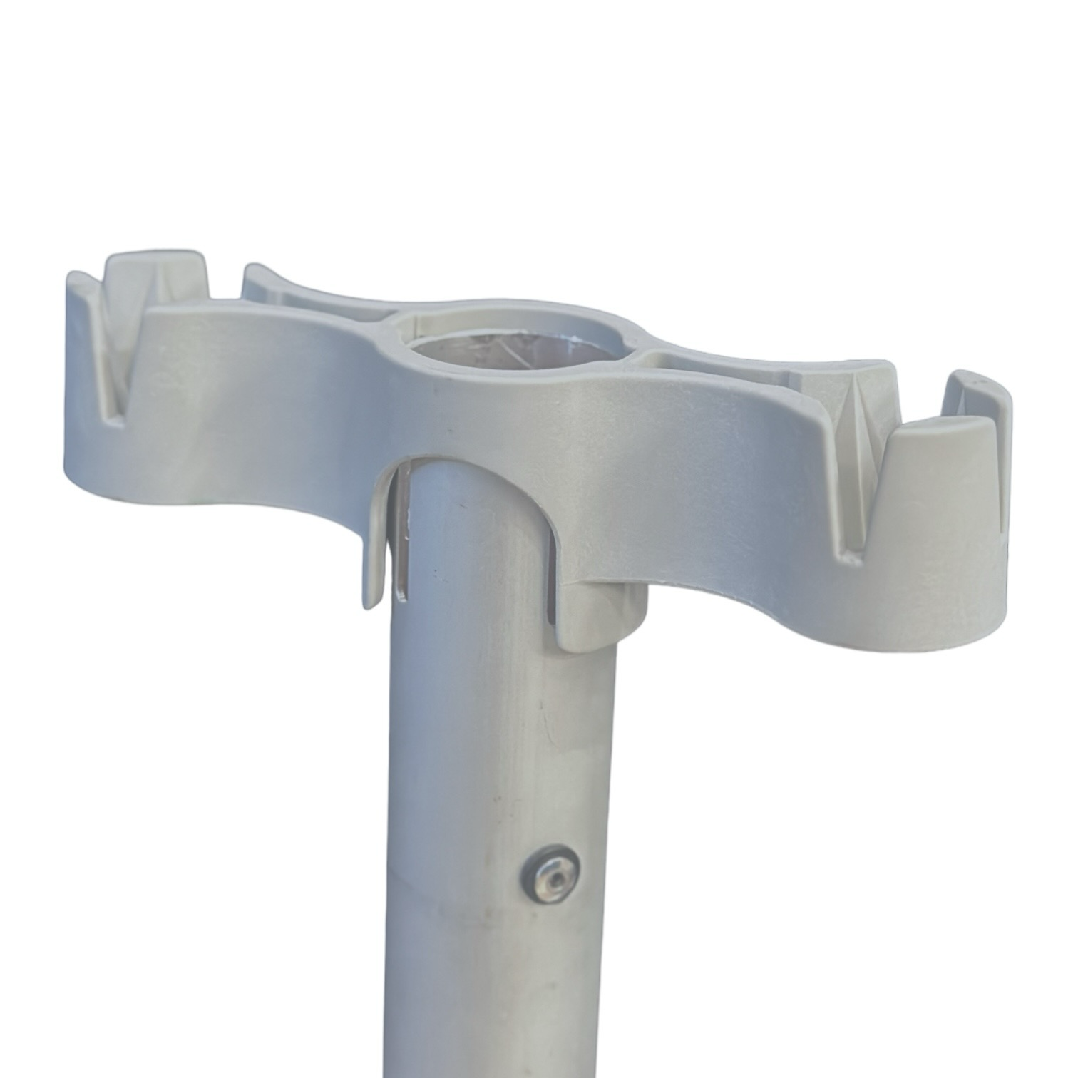Crossbars enter a slot on the upright and gravity will weigh it down to settle the structure in place. It is the responsibility of those assembling the crossbars to determine if they require additional reinforcements, such as a zip tie or tie downs, to ensure greater stability.