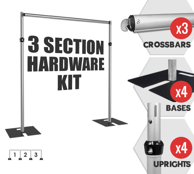 Our 3-Section Pipe & Drape Kit is designed for larger event spaces, trade shows, weddings, photography backdrops, and stage draping. Crafted with high-quality anodized aluminum uprights and heavy-duty steel bases, this kit ensures maximum stability, durability, and ease of use. The expandable design allows you to create a wide, seamless backdrop, making it an ideal solution for professional event setups.