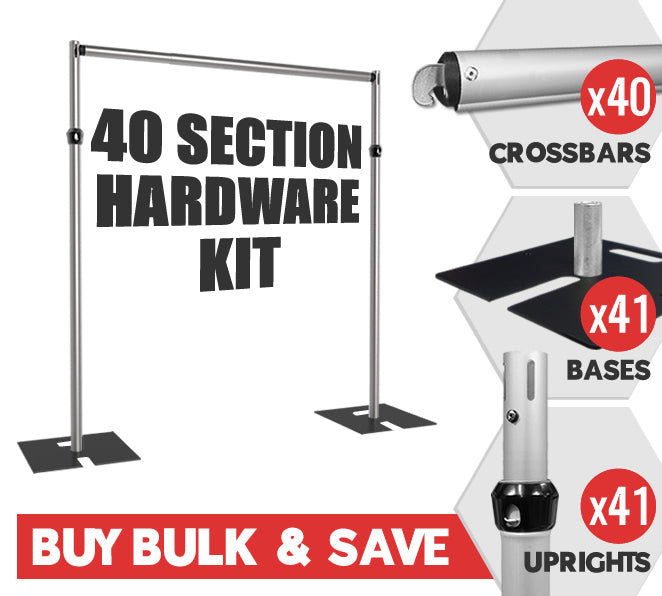 The 40-Section Pipe & Drape Kit is the most extensive backdrop system, making it the top choice for large-scale event planners, exhibition organizers, and rental companies needing maximum coverage and a seamless, professional setup!
