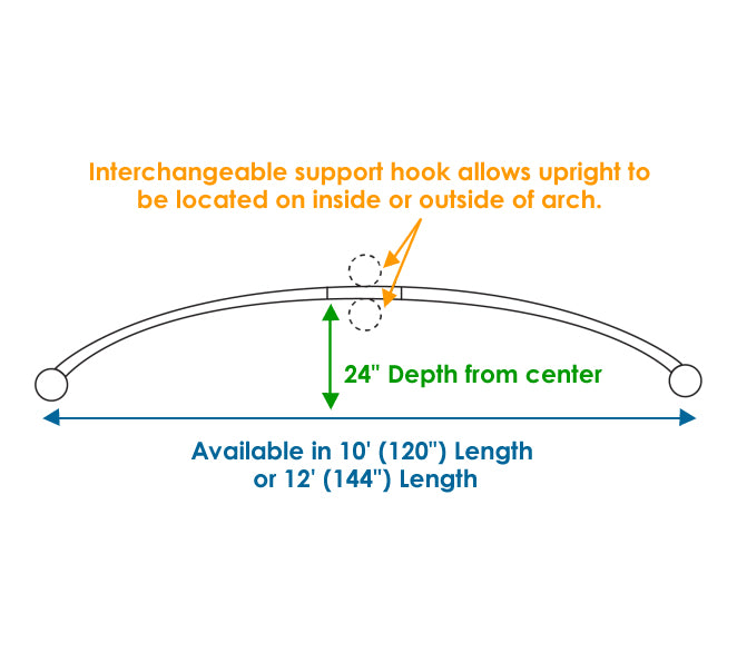 • Interchangeable support hook allows upright to be located on inside or outside of arch.