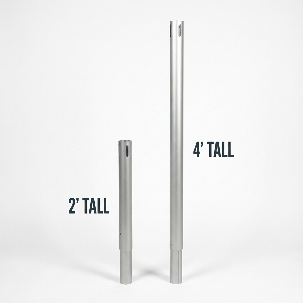 Increase the height and versatility of your setup with our Upright Extensions, designed to seamlessly expand your existing upright system. Available in 2-foot and 4-foot options, these extensions allow you to create taller backdrops, draping, or display structures without replacing your current hardware.