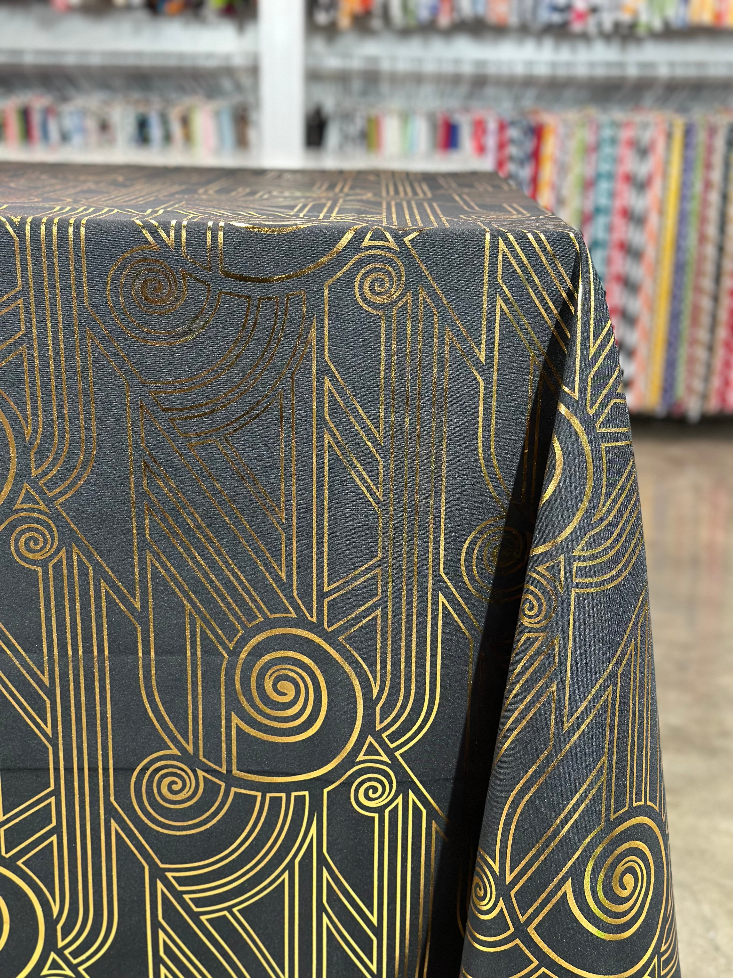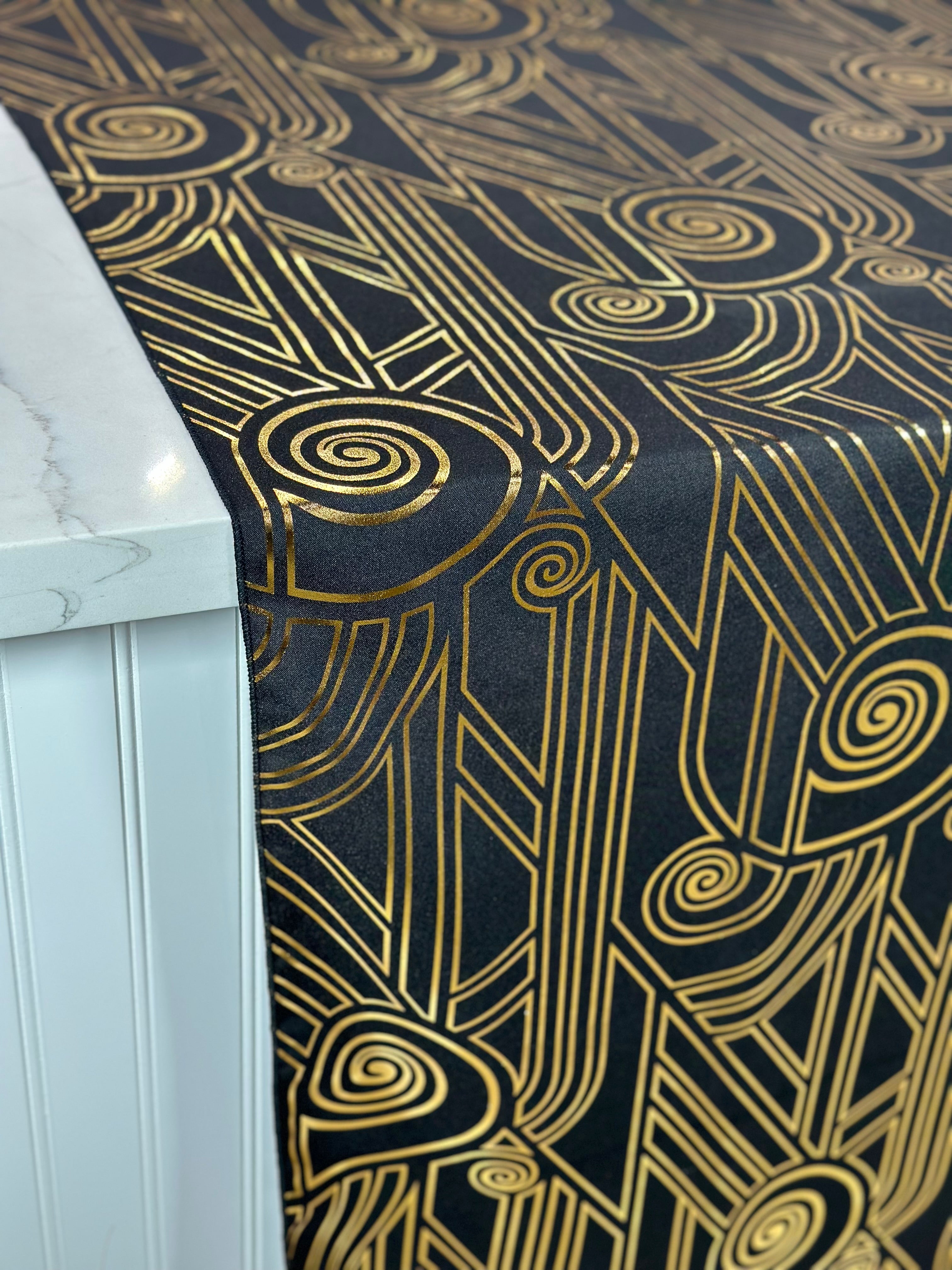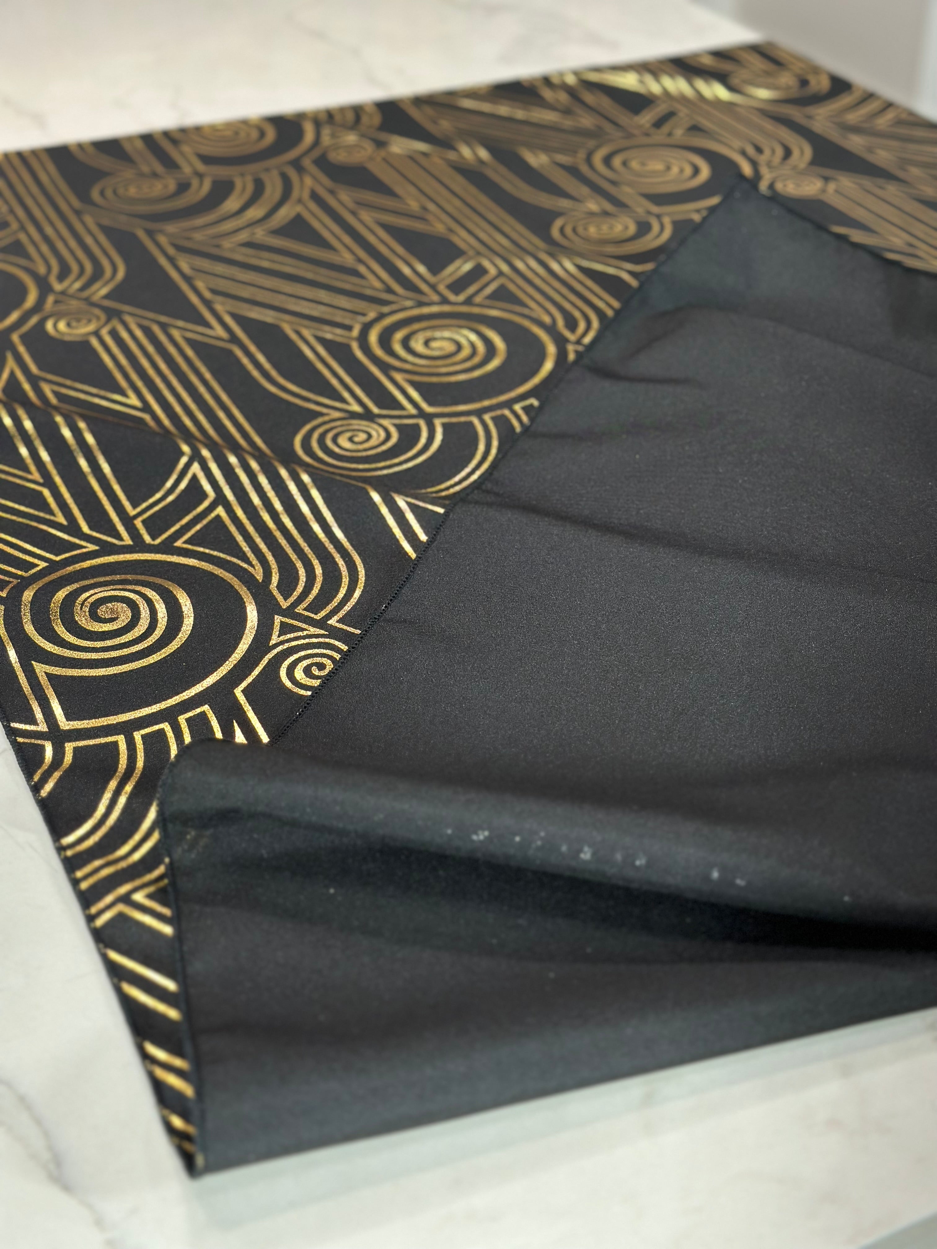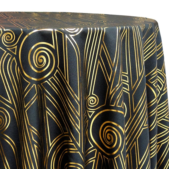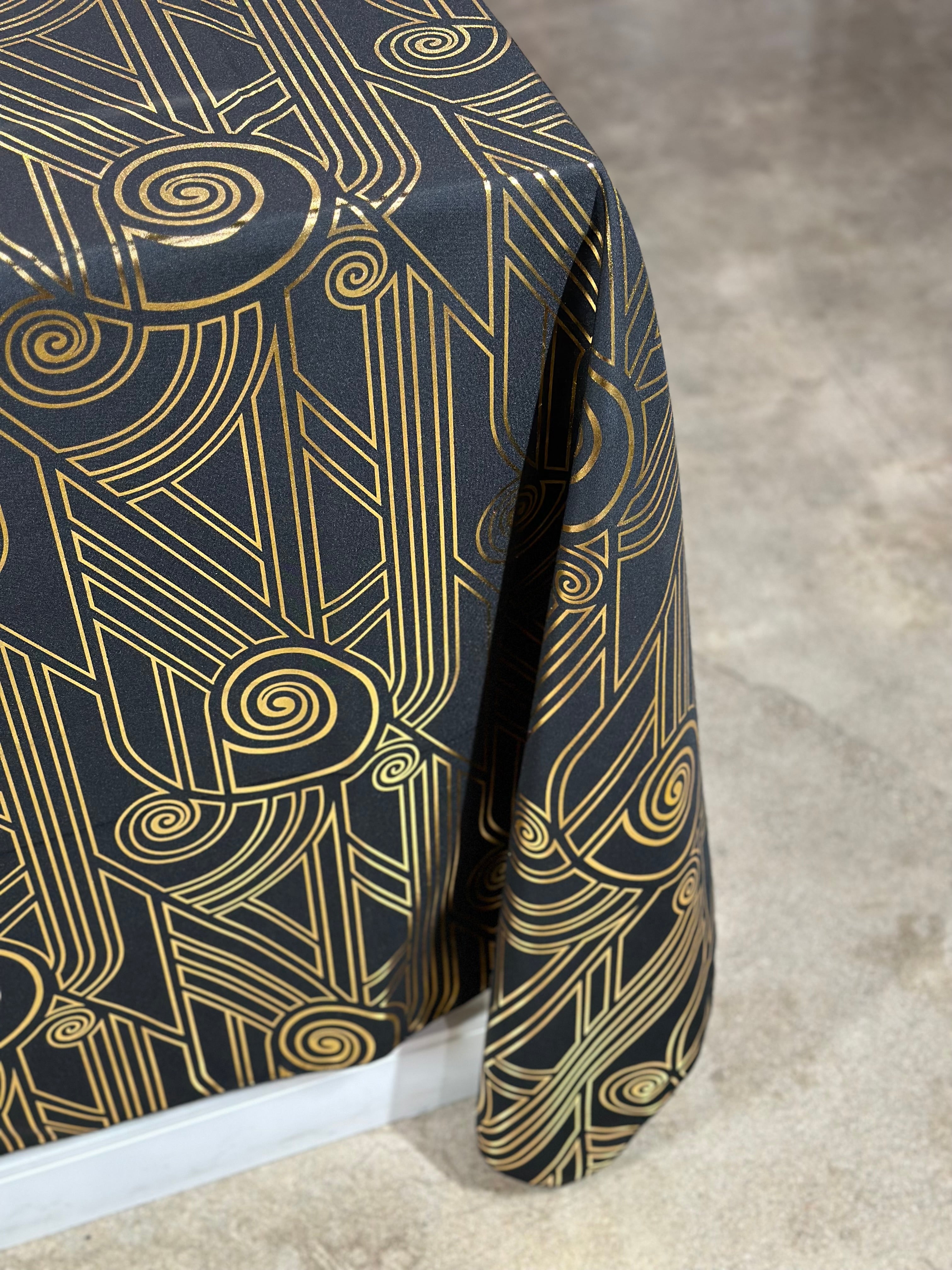 Luxor (Metallic Print) Table Linen in Black and Gold