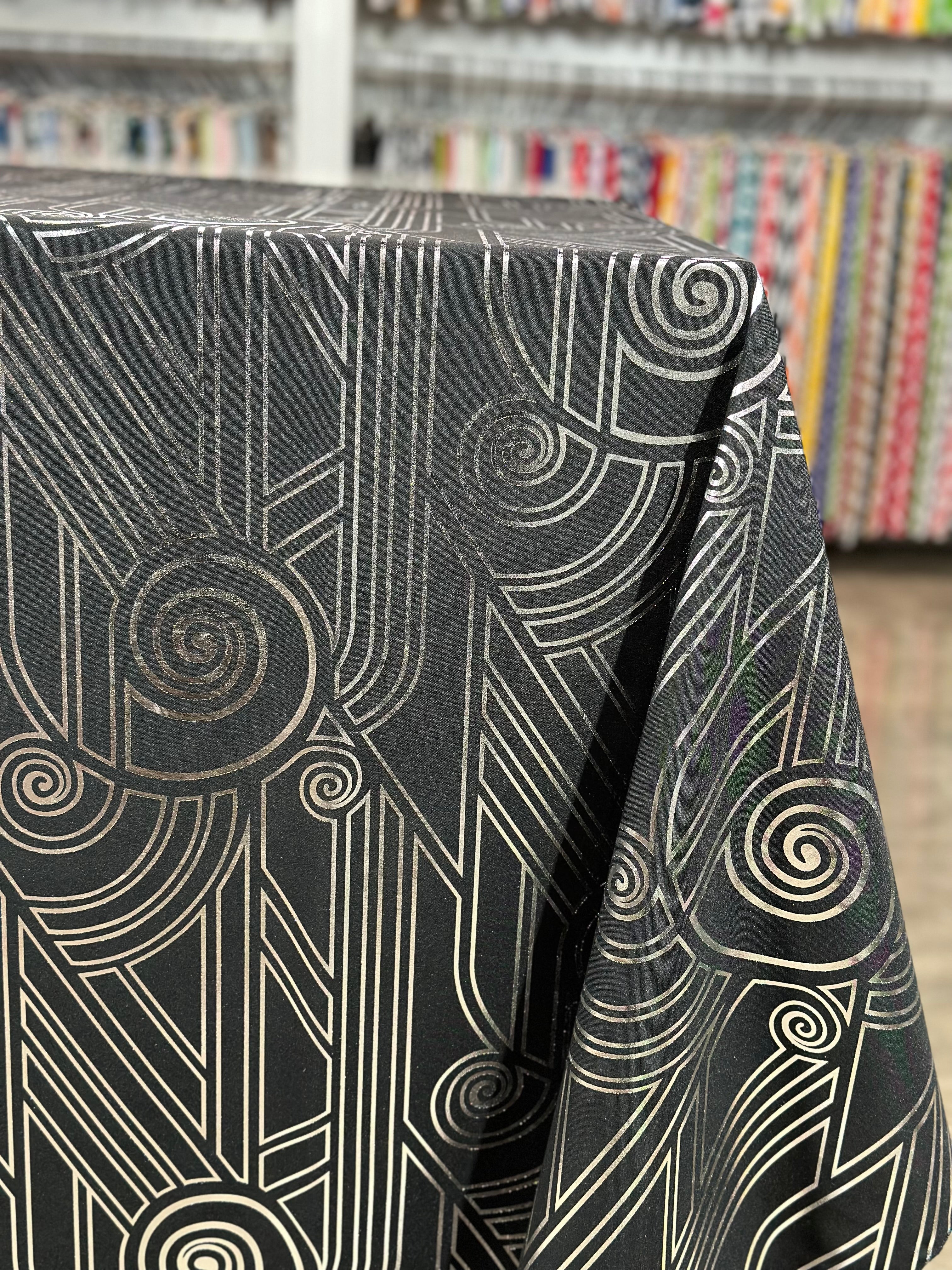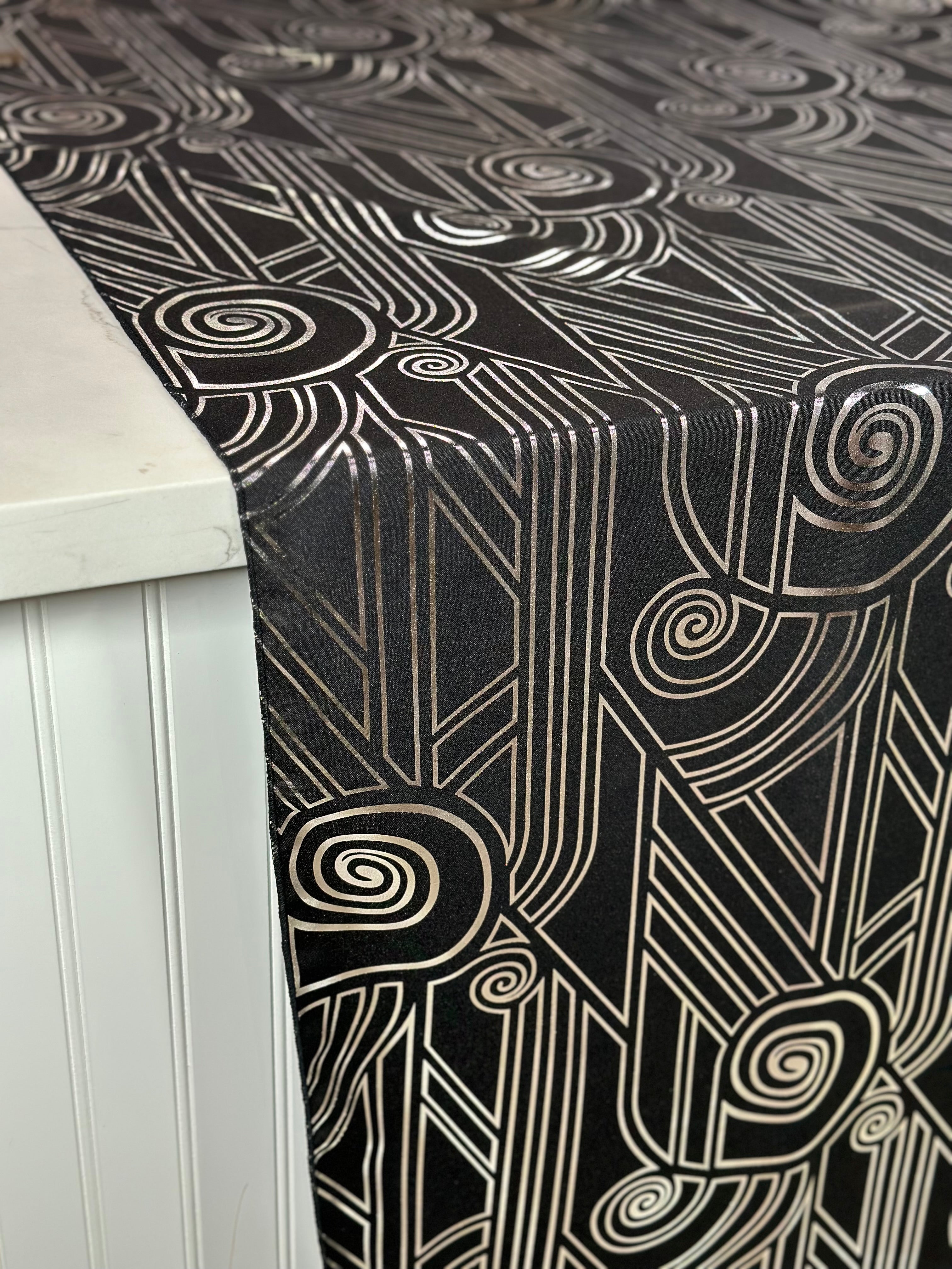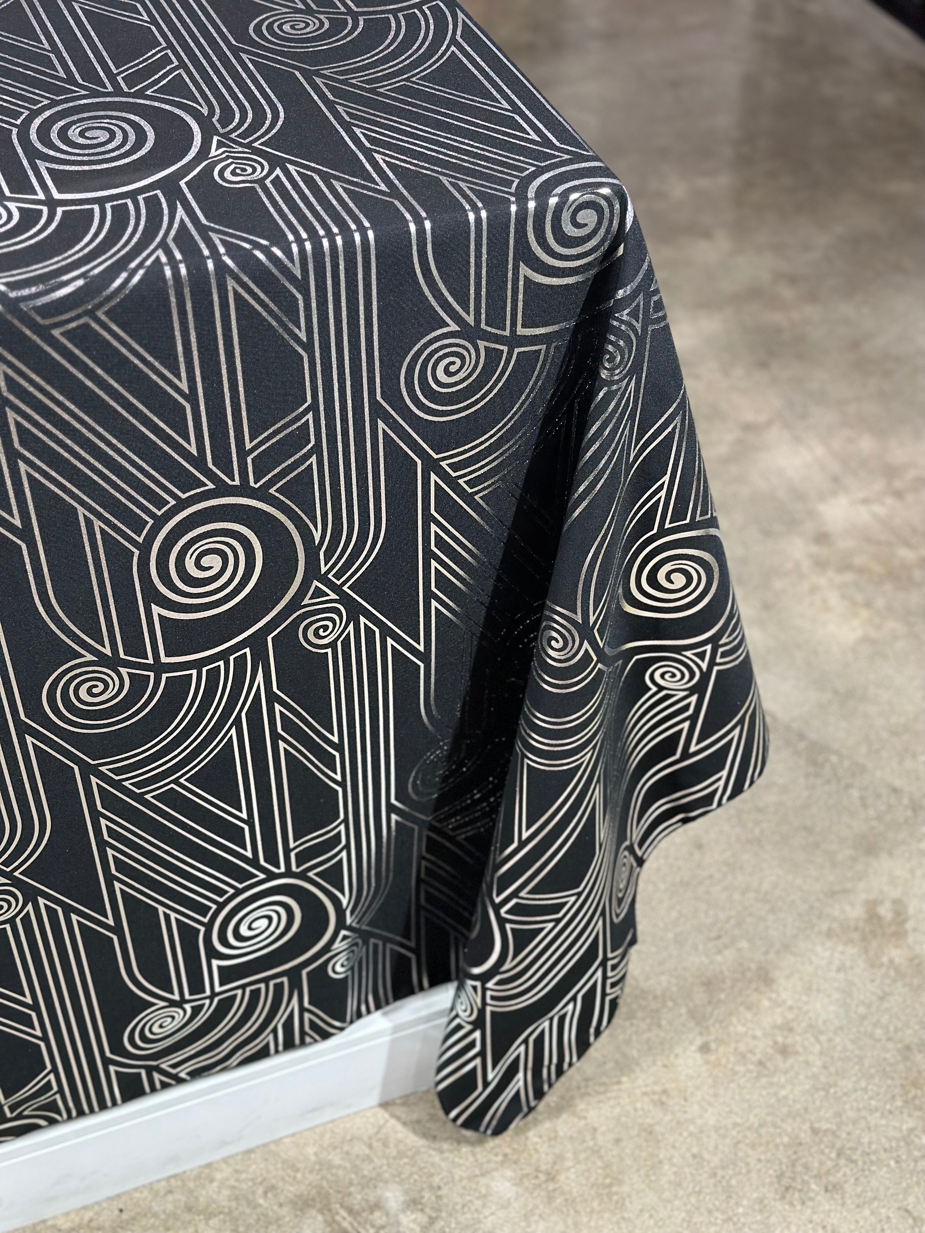 Luxor (Metallic Print) Table Linen in Black and Silver