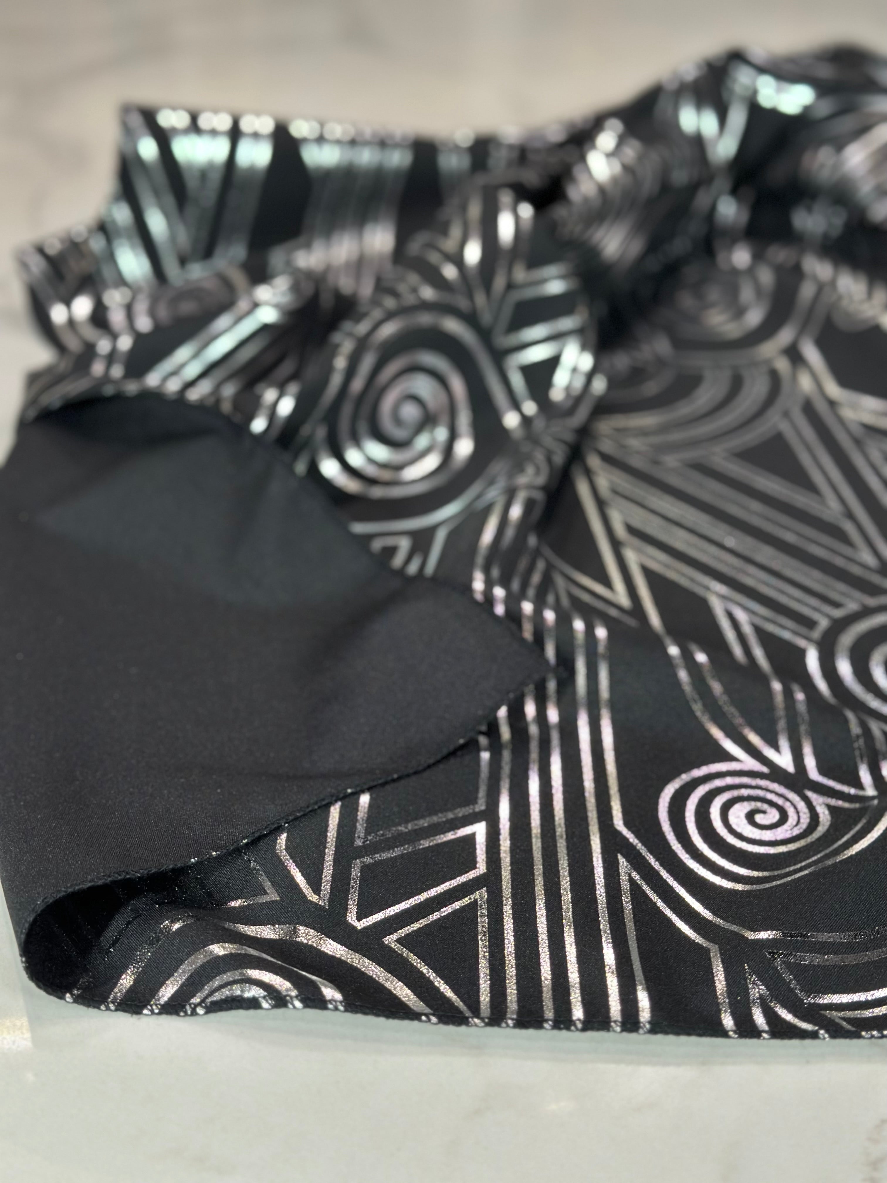 Fabric Collection: This fabric has a Polyester base with our metallic "Luxor" print throughout.