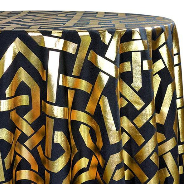 Majestic (Metallic Print) Table Linen in Black and Gold