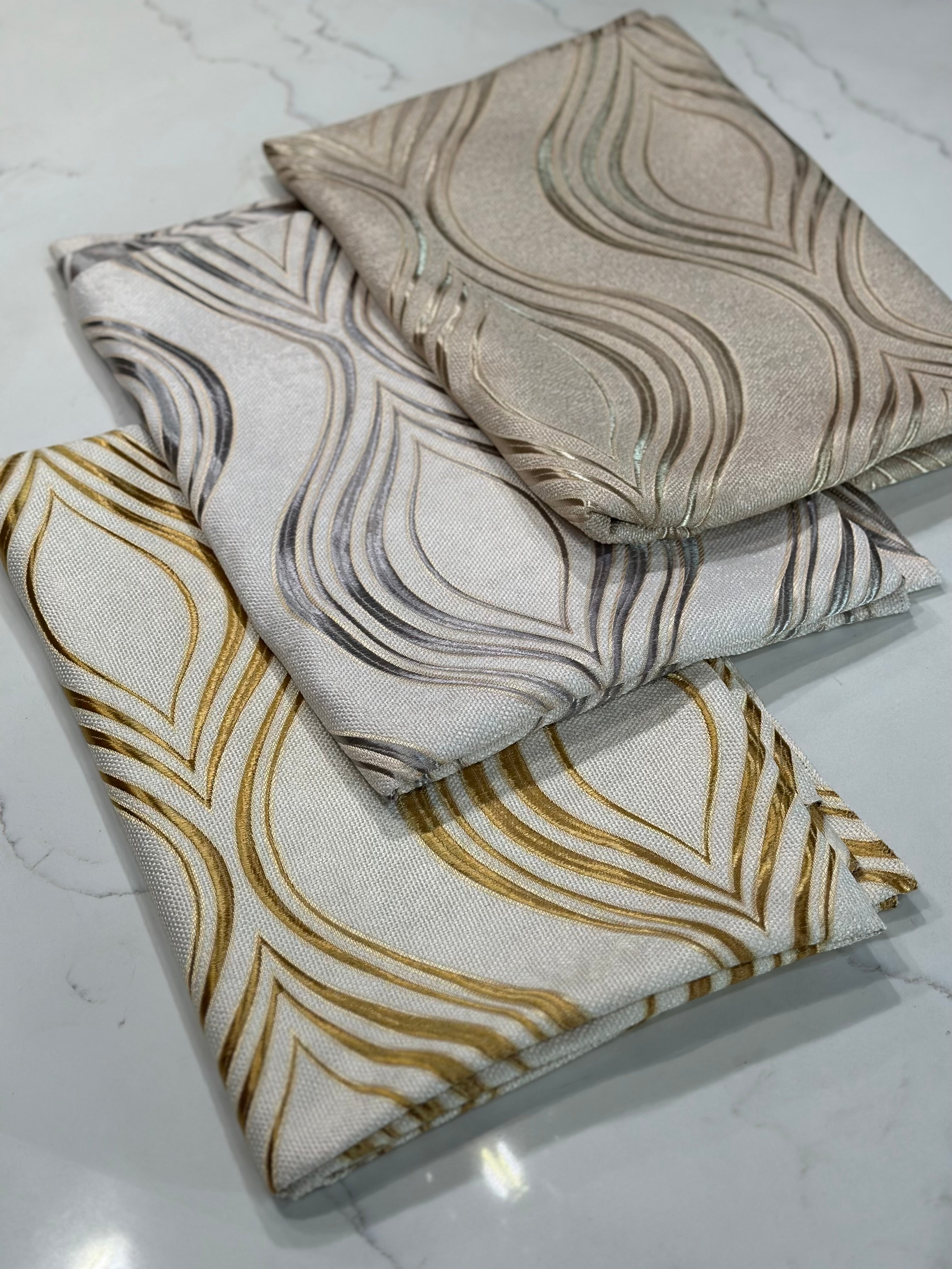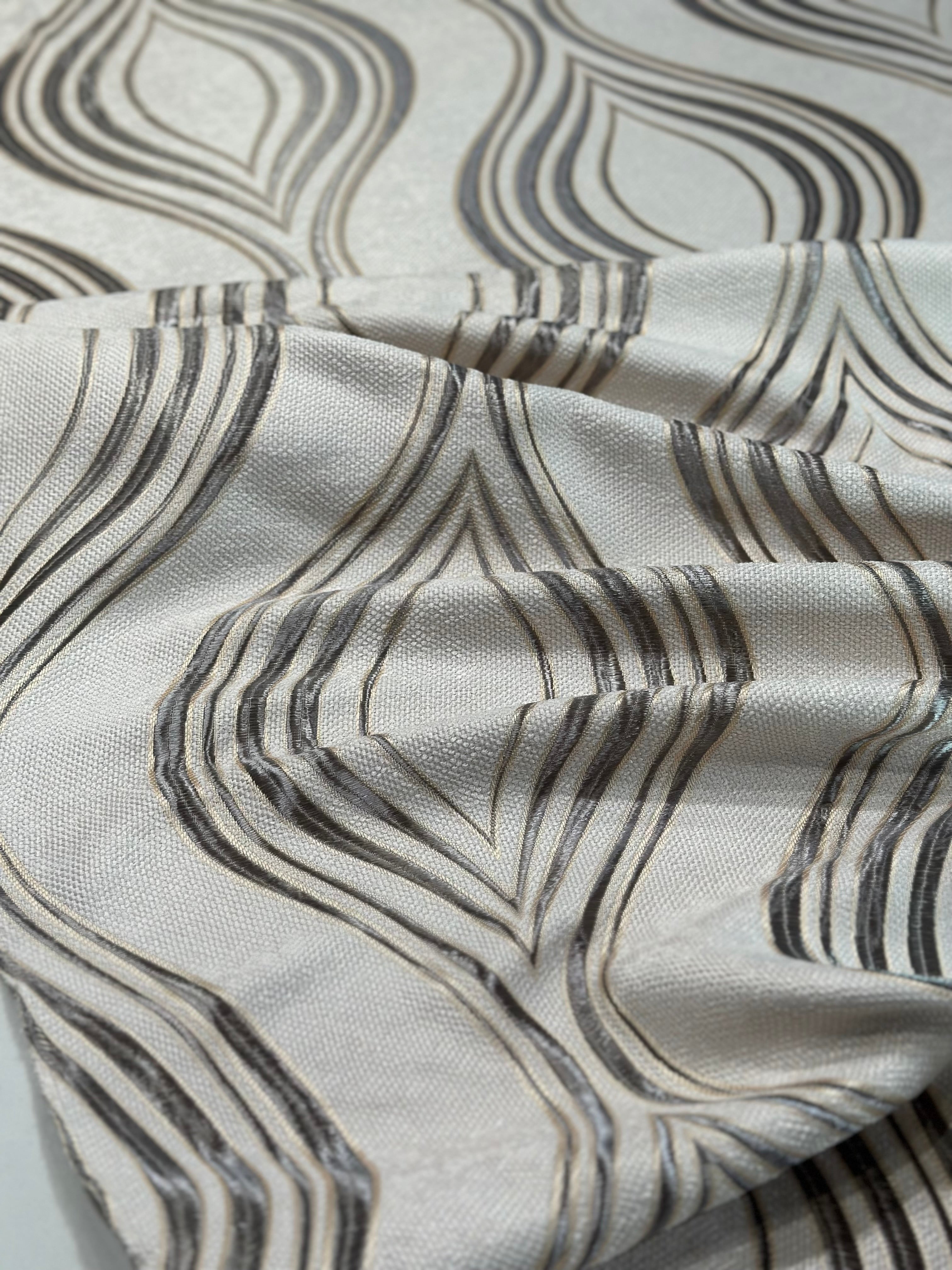 Fabric Collection: This fabric is a double-sided jacquard with a metallic embroidery in our "Eclipse" design throughout.
