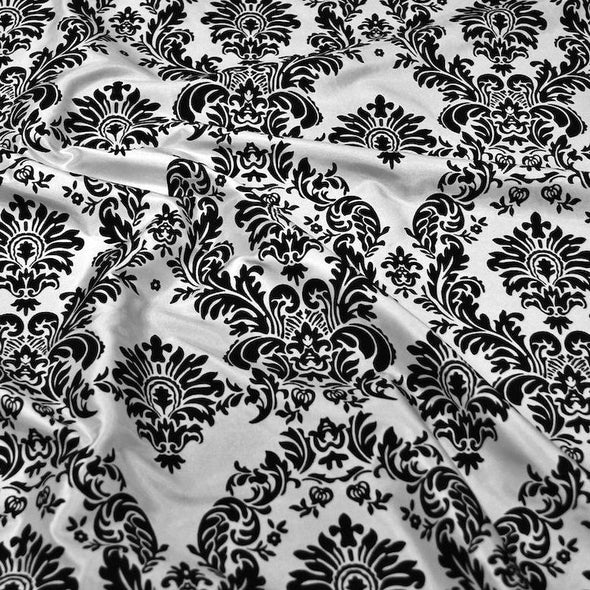 Damask Flocking Taffeta Wholesale Fabric in Black on White