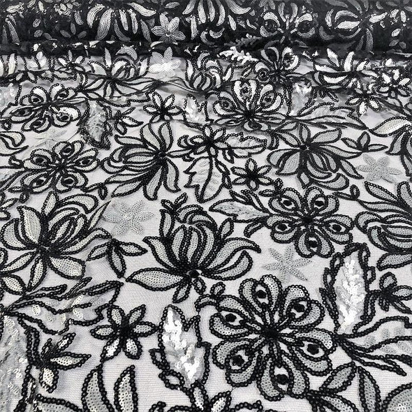 Fabric Collection: This fabric has a mesh base w/ a unique floral sequins design embroidered all throughout the fabric.