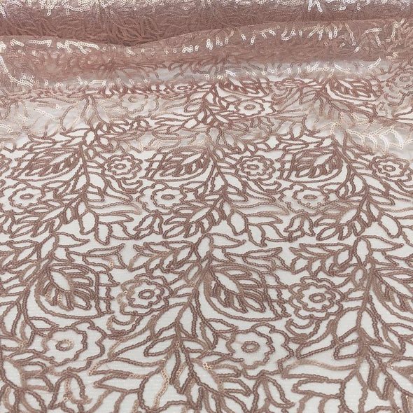 Fiori Leaf Sequins Wholesale Fabric in Blush