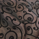Swirl Flocking Taffeta Wholesale Fabric in Black on Brown