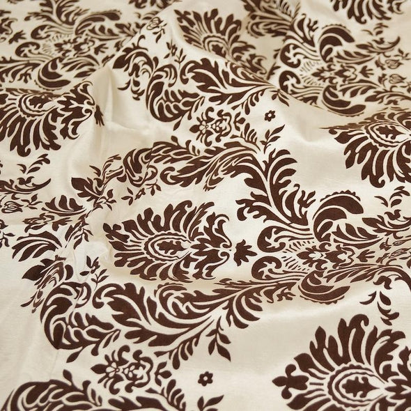 Damask Flocking Taffeta Wholesale Fabric in Brown on Khaki