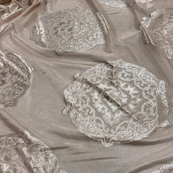 Medallion Jacquard Sheer Wholesale Fabric in Champagne
