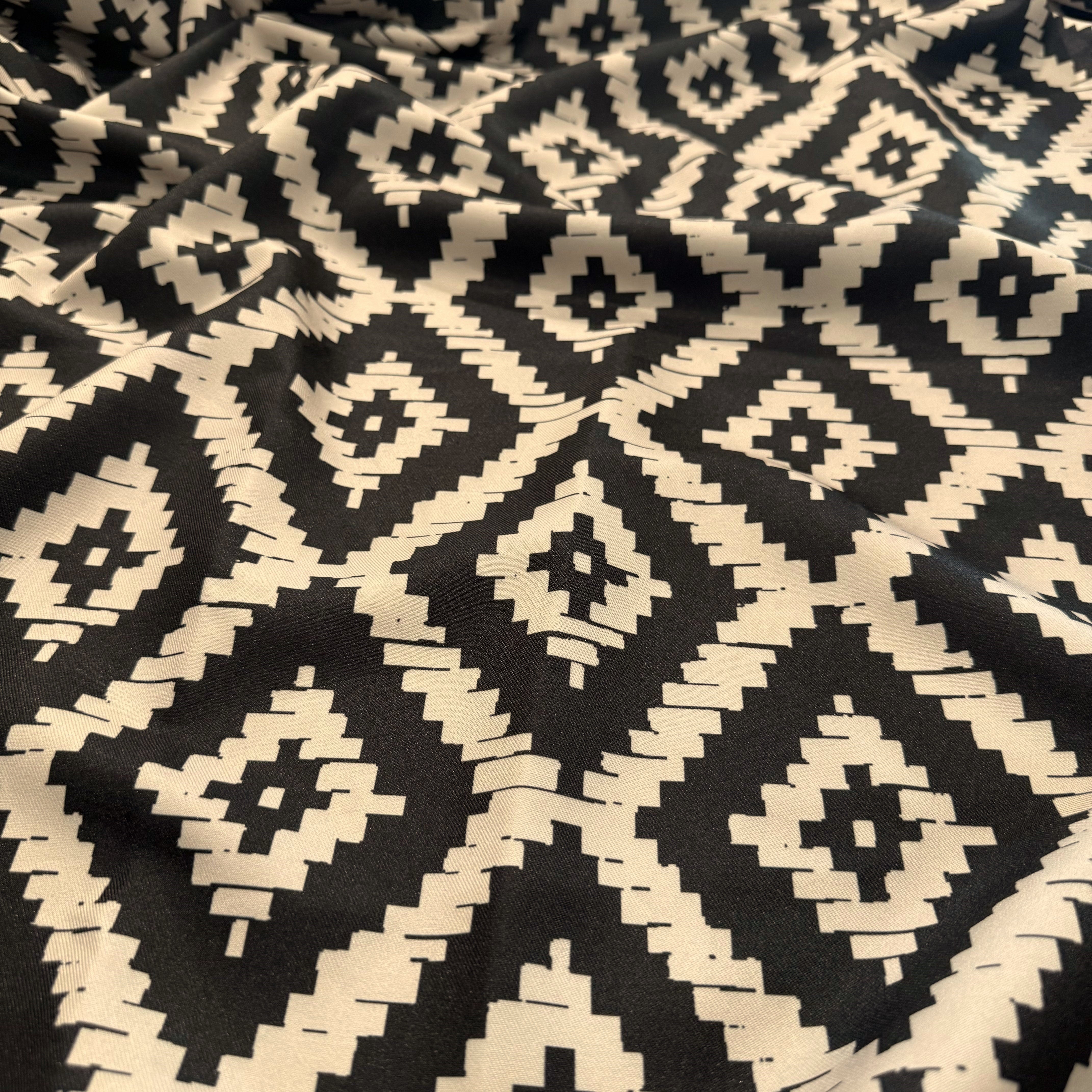 Transform your event décor with our Onyx (Poly Print) table linens, featuring a boho-inspired design with a bold geometric pattern. This stylish fabric is perfect for adding a modern bohemian touch to special occasions, from weddings to corporate gatherings. Ideal for tablecloths, napkins, runners, and drapes, its versatile design enhances the visual appeal of any setting. Whether you're creating a chic banquet or a sophisticated event backdrop, this fabric brings artistic elegance and a unique boho vibe to your décor.