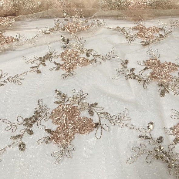 Fabric Collection: This fabric has a mesh/sheer base w/ a floral & sequins embroidery design.