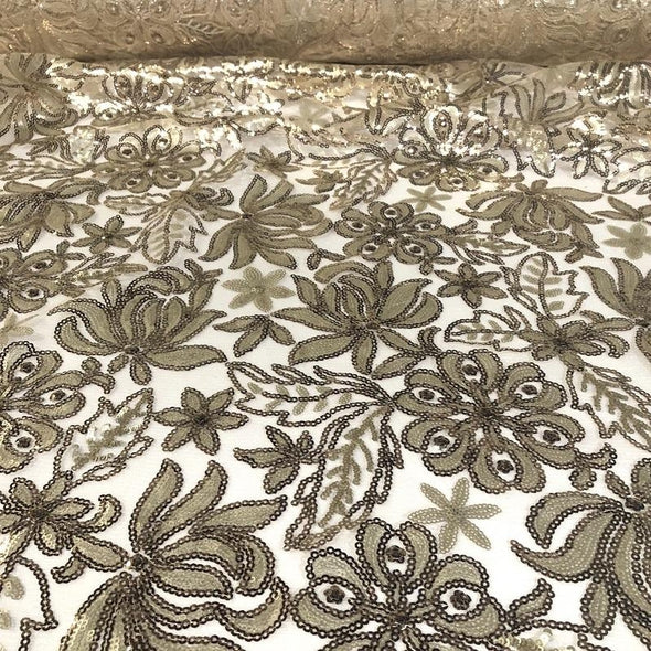 Fabric Collection: This fabric has a mesh base w/ a unique floral sequins design embroidered all throughout the fabric.