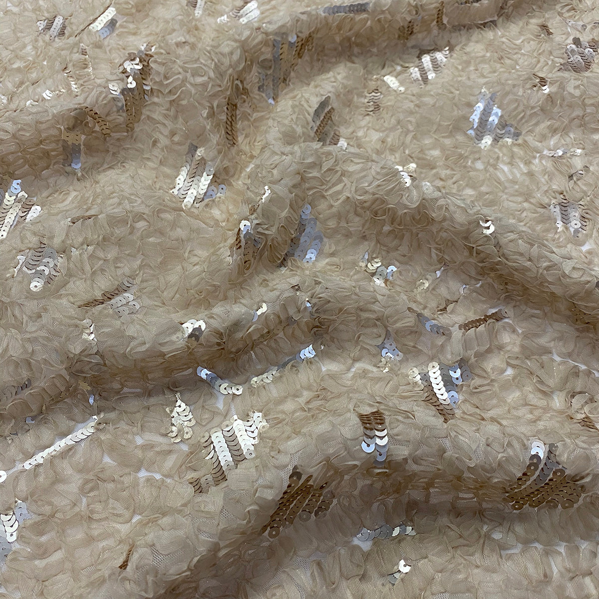 Fabric Collection: This fabric has a mesh/sheer base w/ a ribbon and sequined design throughout.