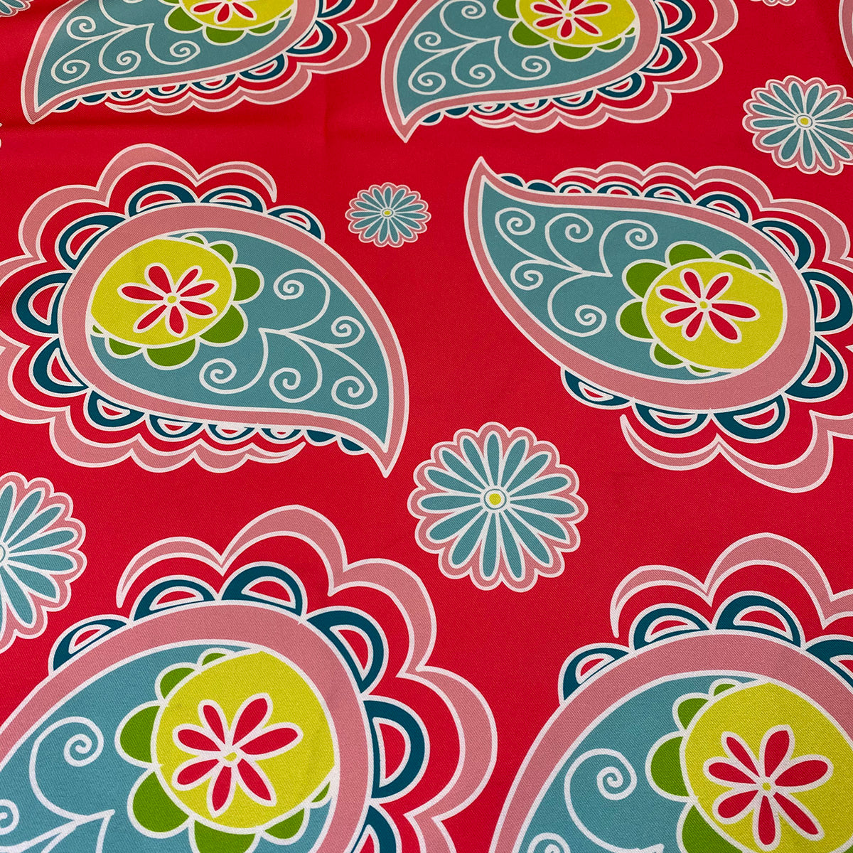 Fabric Collection: This fabric is a Polyester base with a uniquely colored paisley design throughout.