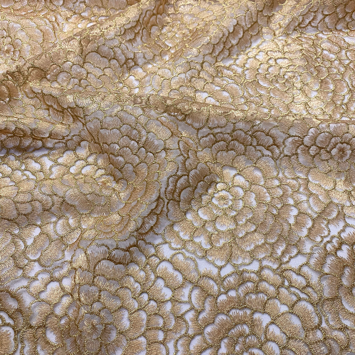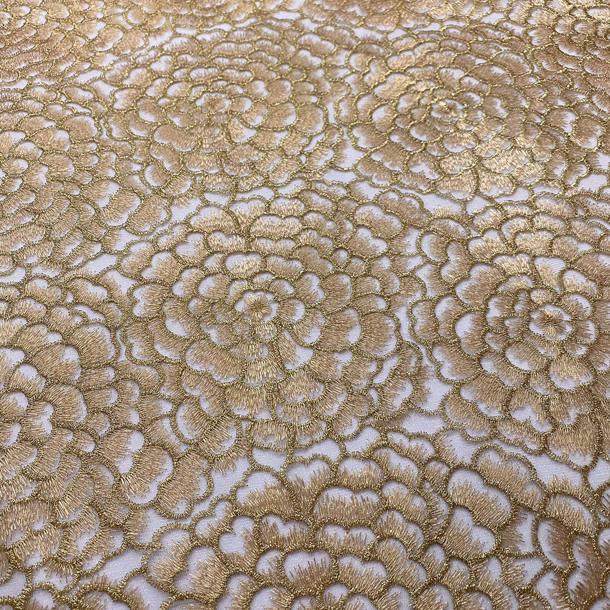 Fabric Collection: This fabric has a mesh/sheer base w/ a floral & metallic design embroidered throughout.