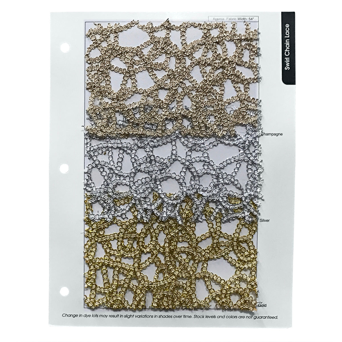 Fabric Collection: This fabric is a Lace material that has a chain link embroidery through a ribbon design.