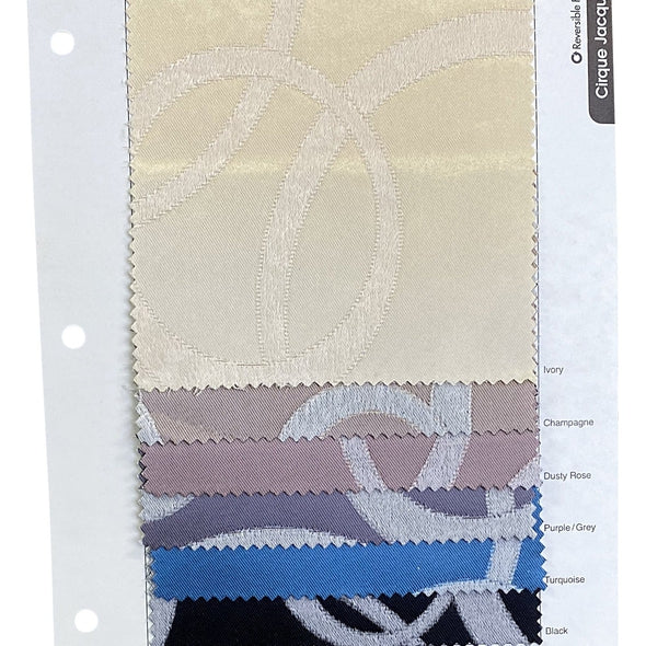 Fabric Collection: This fabric is a reversible double-sided material with one side having a soft fiber finish and the other is a smooth finish with a slight shine in our Cirque jacquard print.