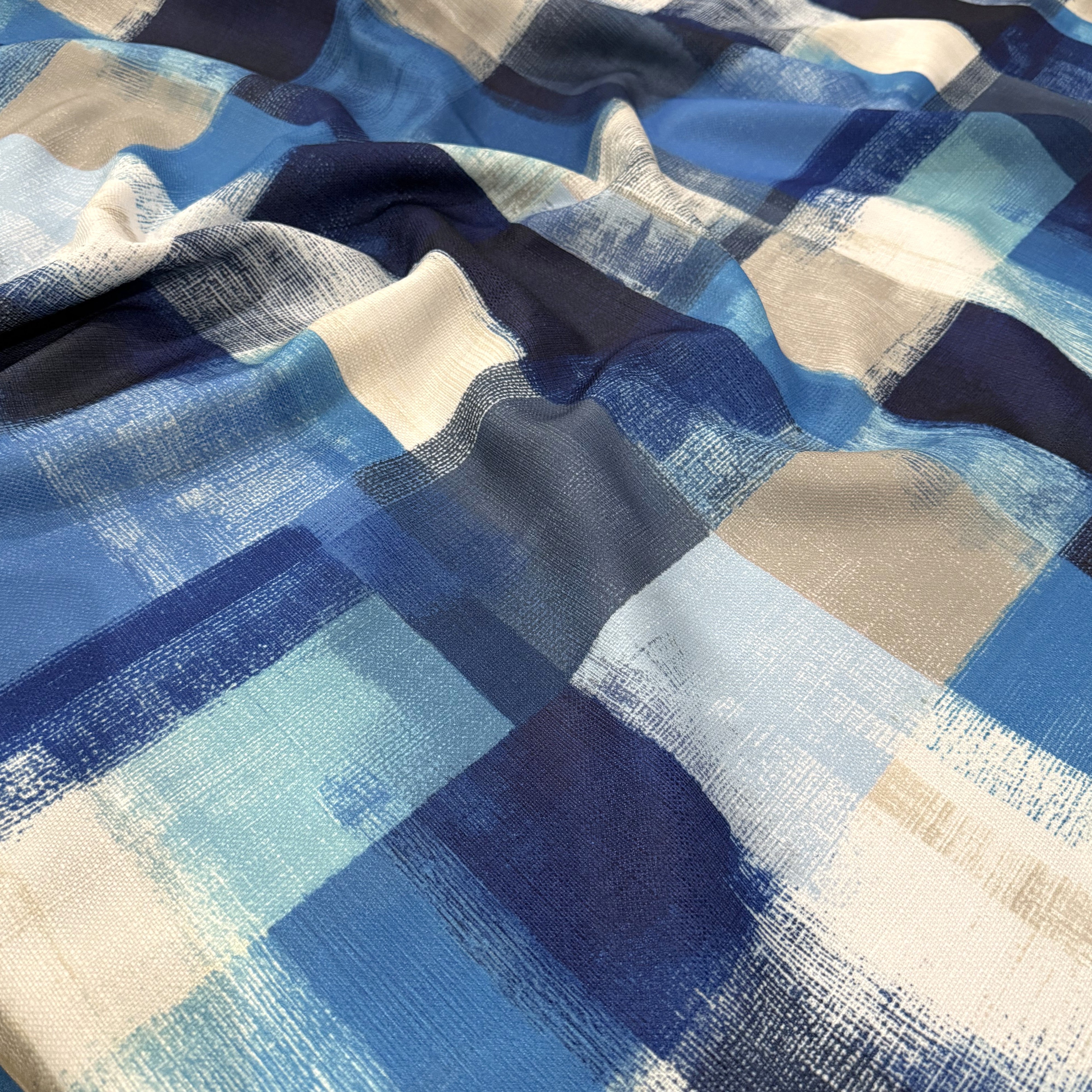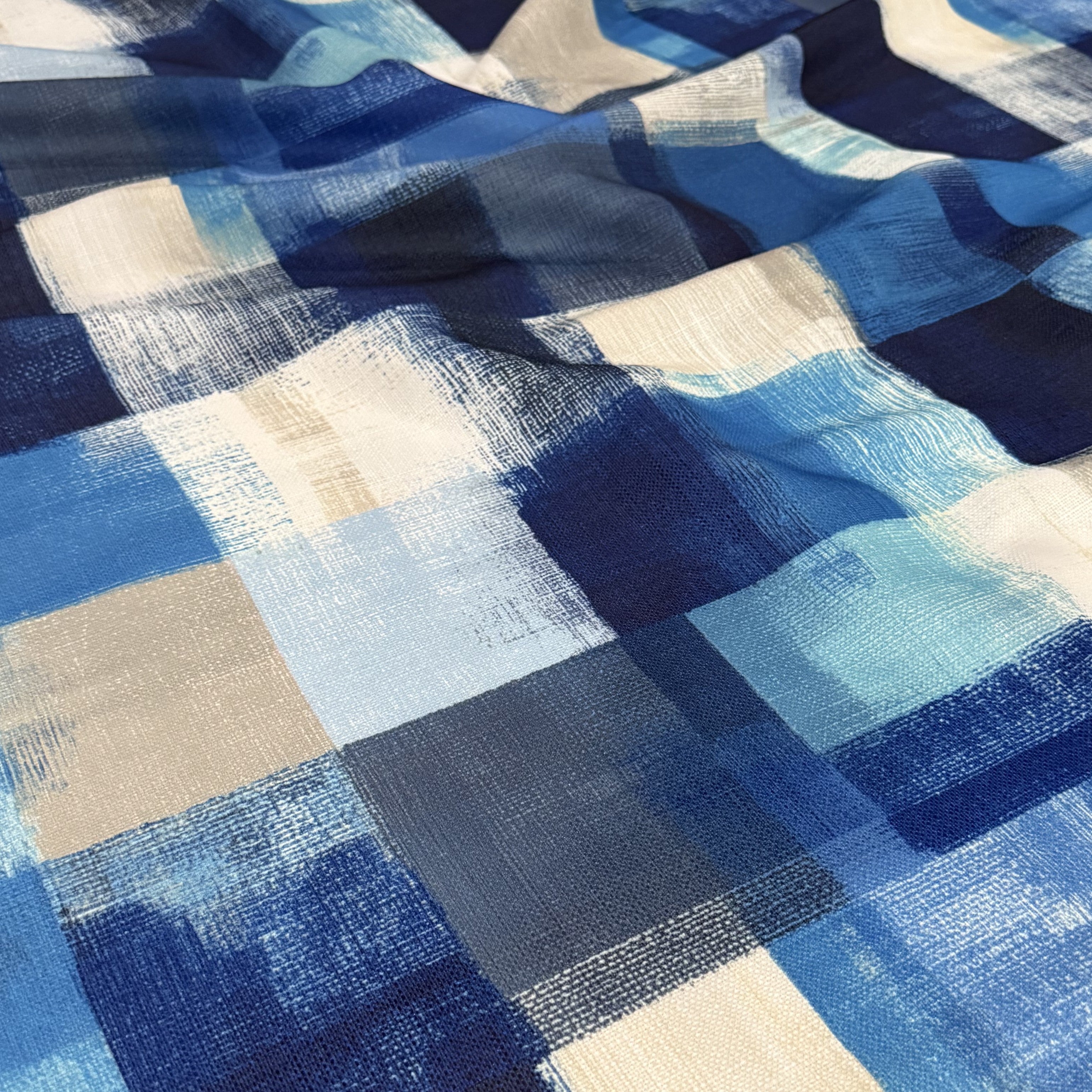 Abstract Plaid (Slub Print) Wholesale Fabric in Blue