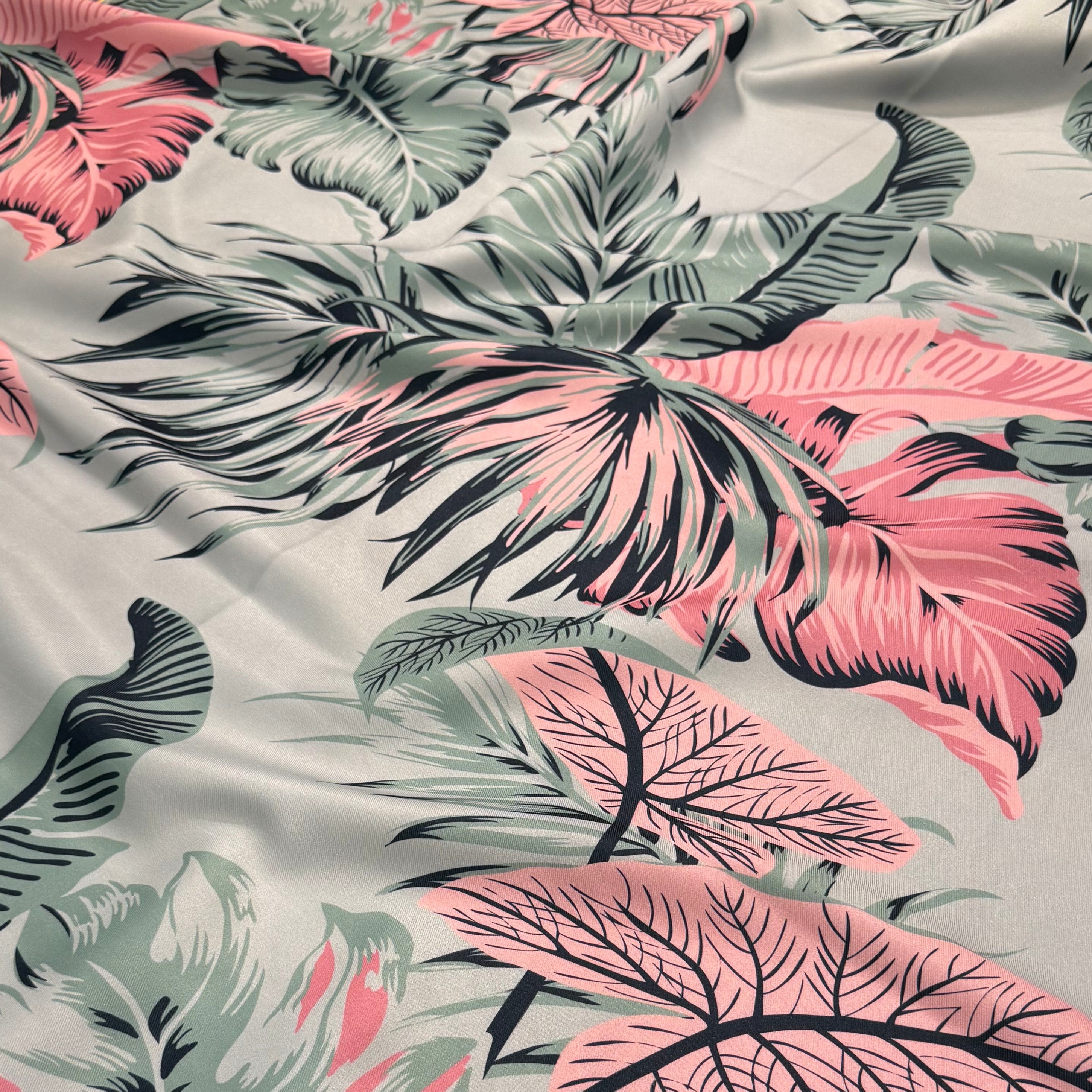 Fabric Collection: Fresh and vibrant, our Palmetto (Poly Print) features bold pink and green tropical leaves printed on durable polyester twill base. Perfect for tablecloths, runners, napkins, and drapes, it’s wrinkle-resistant, easy-care, and ideal for weddings, special events, hotels, and event rentals.