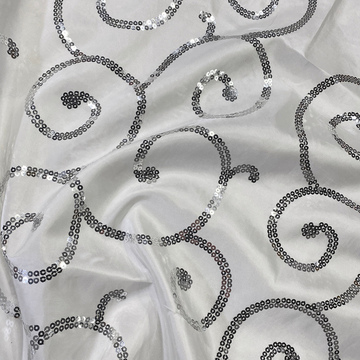 Swirl Sequins Taffeta Wholesale Fabric in Silver and White