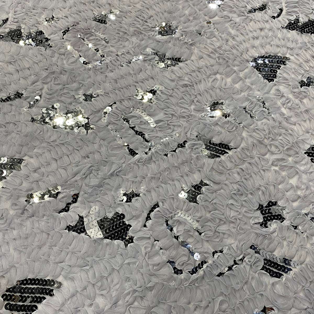 Fabric Collection: This fabric has a mesh/sheer base w/ a ribbon and sequined design throughout.