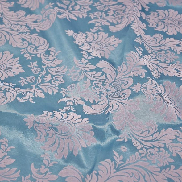 Damask Flocking Taffeta Wholesale Fabric in Silver on Turquoise