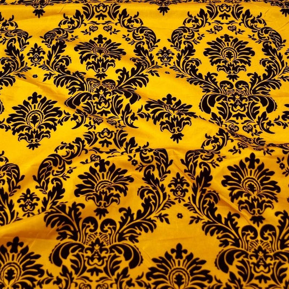 Damask Flocking Taffeta Wholesale Fabric in Black on Yellow