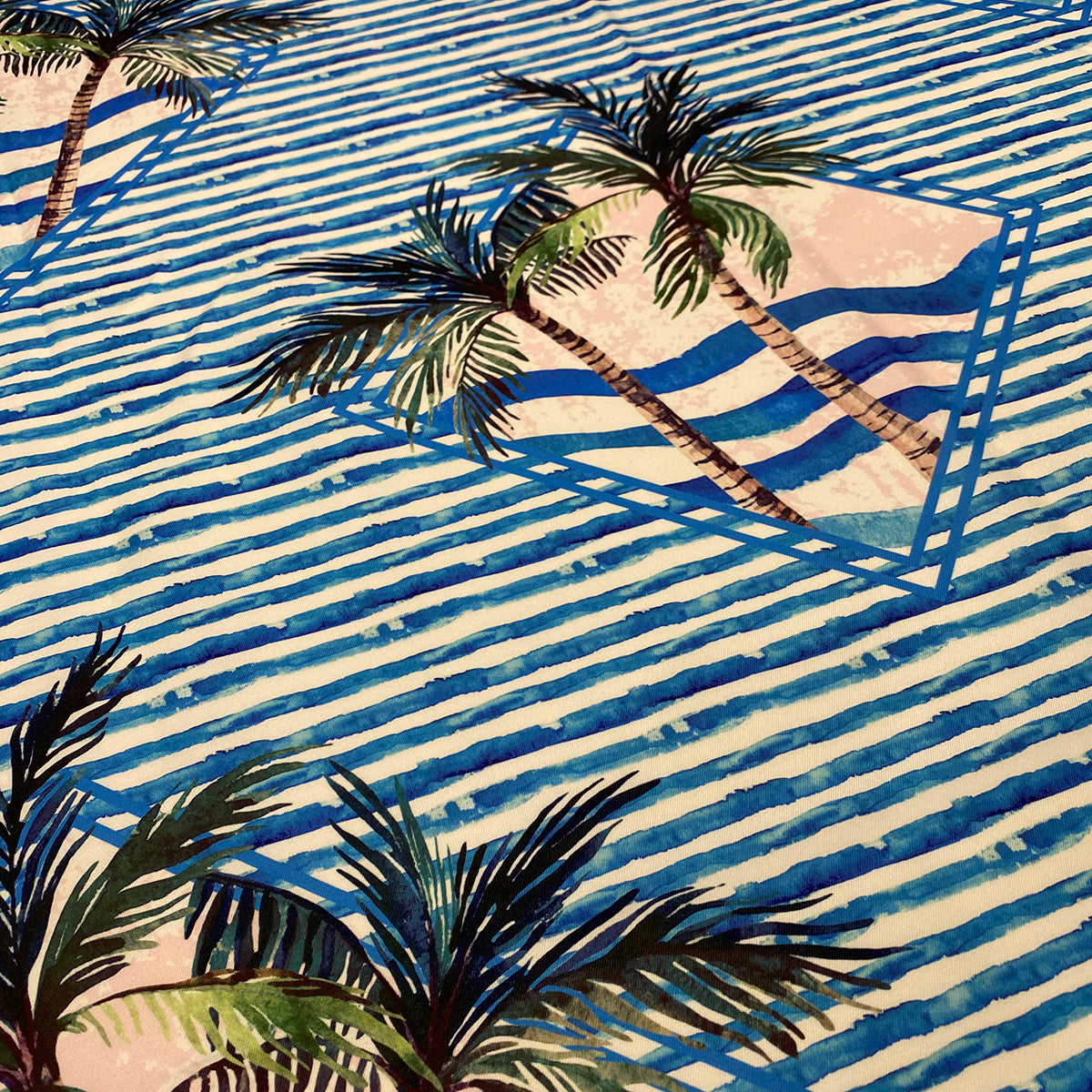 Fabric Collection: This fabric is a 100% Polyester base with Caribbean Blues print.