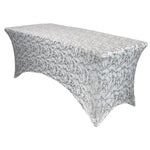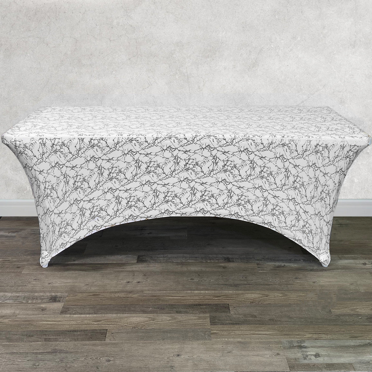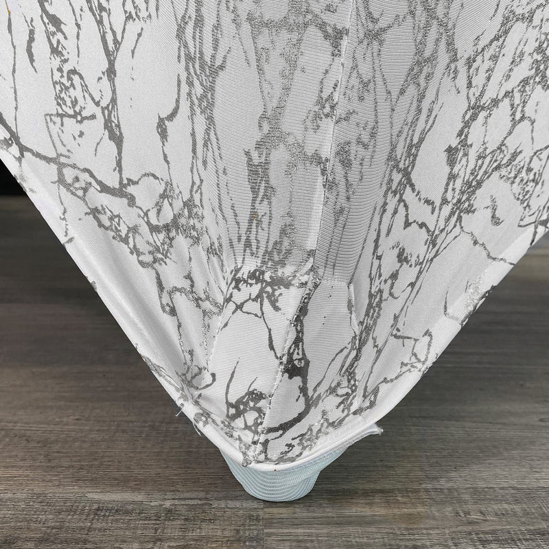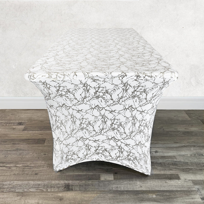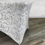 Print Spandex (8'x30") Banquet Table Cover in White with Silver Marbling