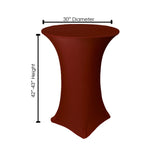 Our durable spandex chair covers fit standard 30"x42" Highboy/Cocktail Tables (30" Round x 42" Tall w/ 4 Leg Base). They're made from high quality spandex with a 4-way stretch so they're easy to put on and made to last. They're also made with durable elastic foot pockets which help secure the cover in place, ensure a great fit, and help prevent damage and excess wear and tear. These covers are a perfect way to improve the look of your chair covers and ideal for rental companies, banquet halls, hotels, various venues and special events.
